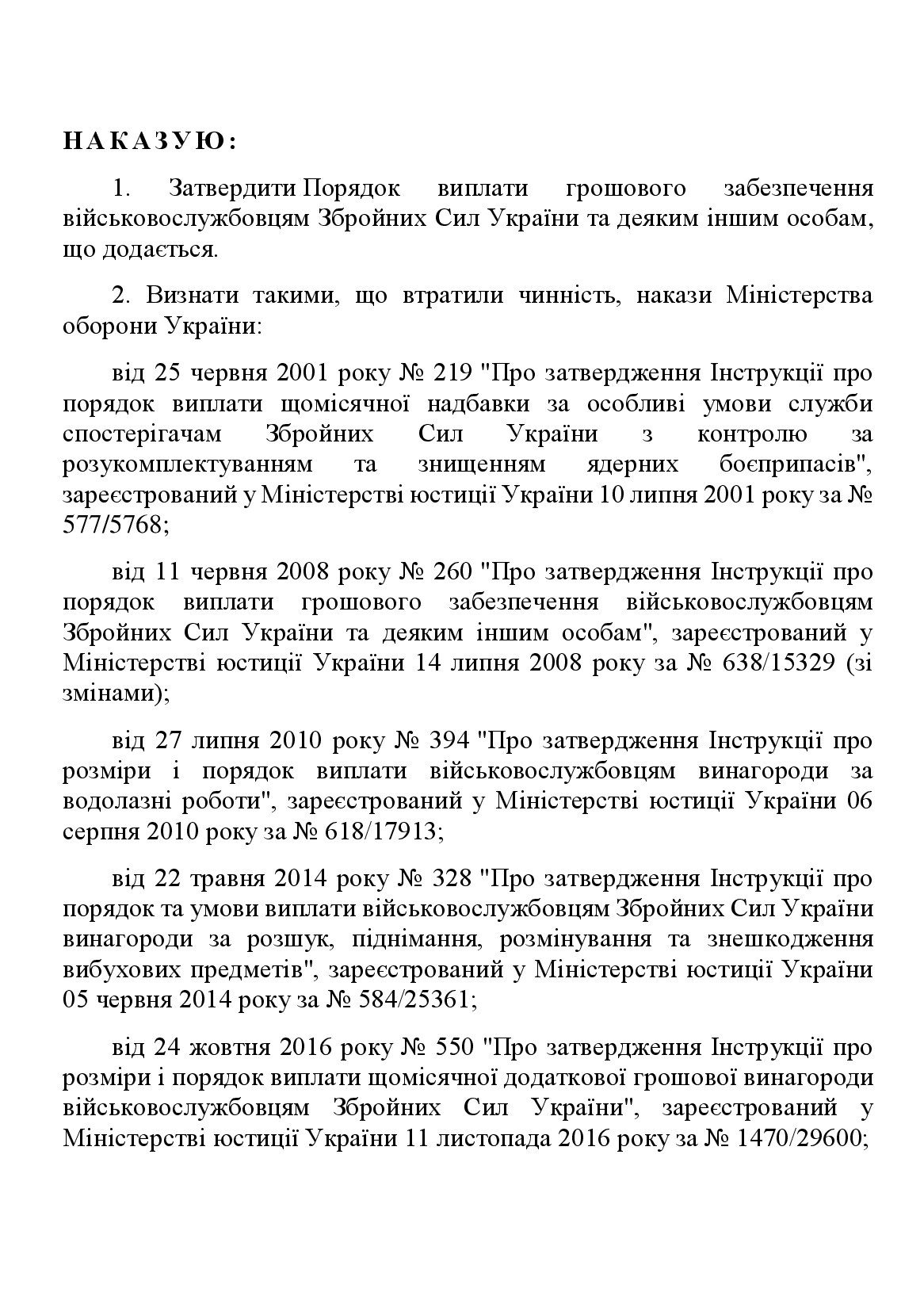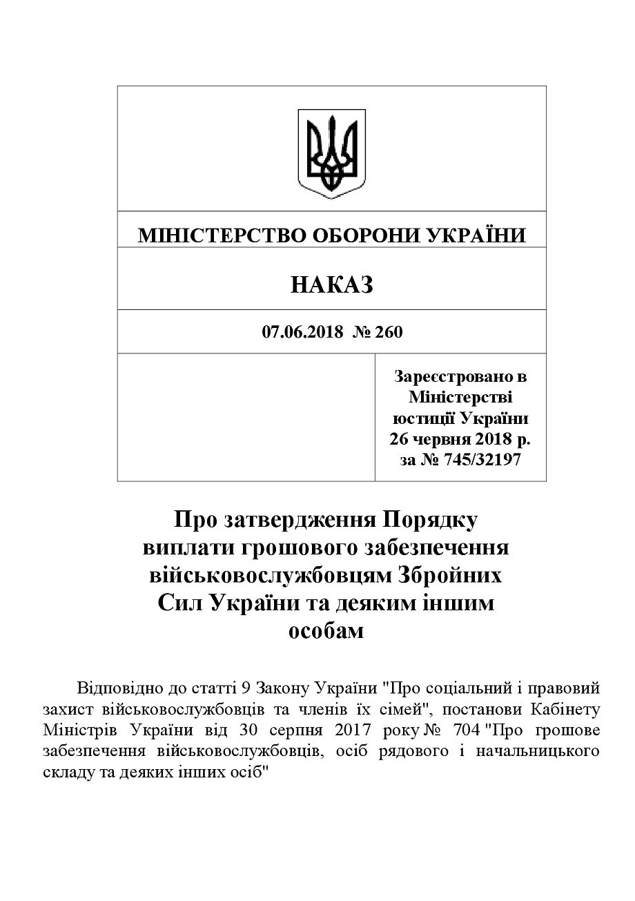 Купить Приказ 260+ Приложения. Об утверждении Порядка выплаты денежного довольствия военнослужащим Вооруженных Сил Украины и некоторым другим лицам.