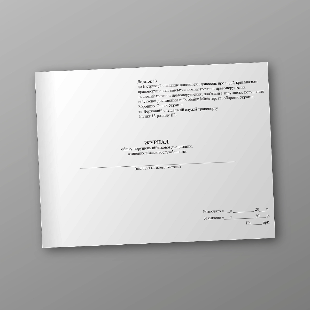 Журнал или книга воинского учета может быть выполнена в мягкой или твердой обложке. Если Вы не нашли нужную книгу для ВСУ или количество страниц и прочее нужно сделать под вашу задачунапишіть нам на e-mail [email protected], мы обязательно свяжемся с Вами. Все военные журналы мы печатаем в соответствии с приказом МО Украины.