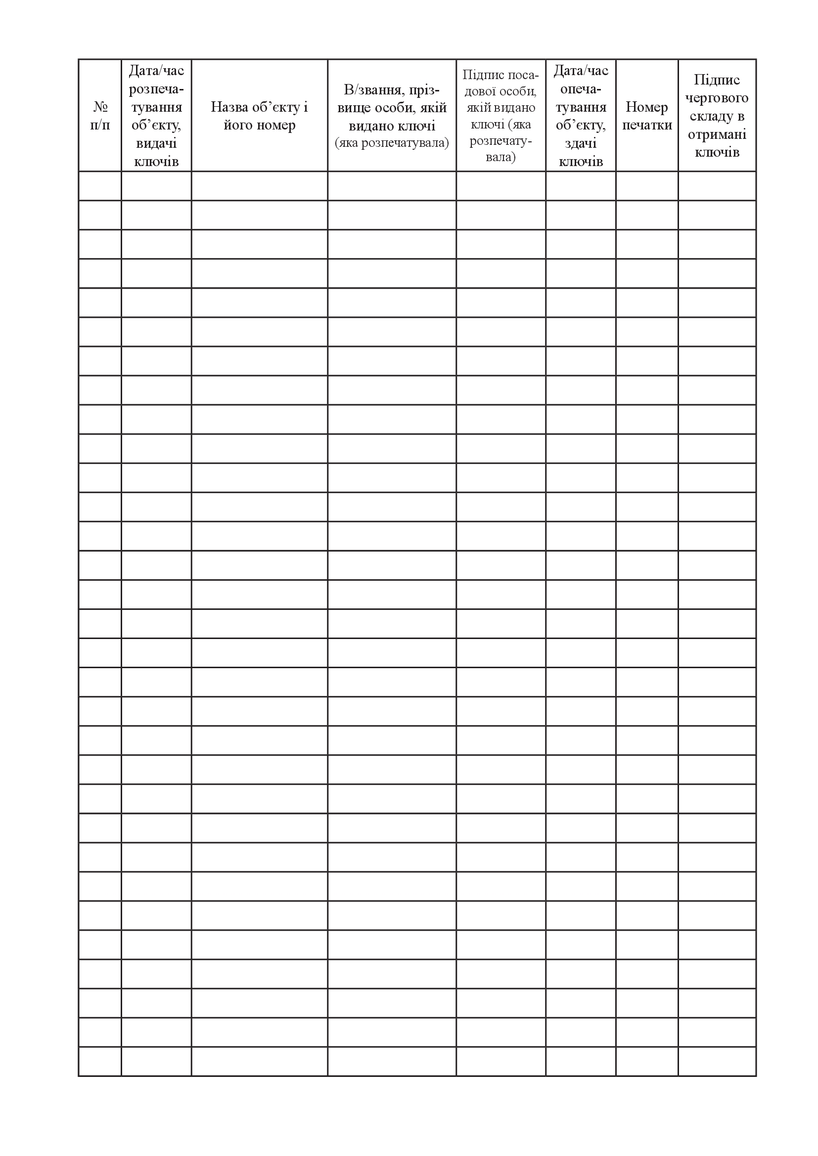 Книга учета распечатывания хранилищ и выдачи ключей от хранилищ мест хранения (склада).
