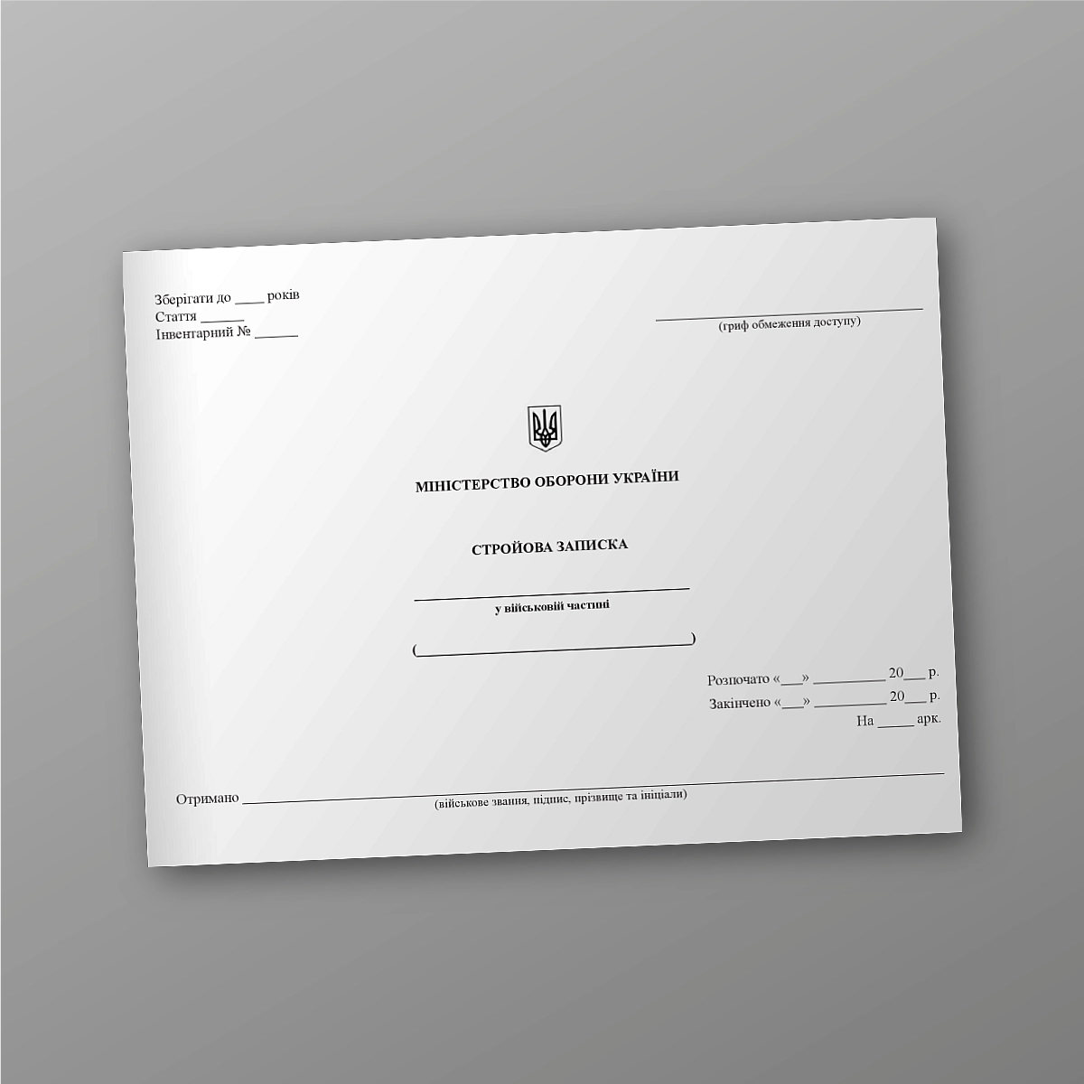 Журнал или книга воинского учета может быть выполнена в мягкой или твердой обложке. Если Вы не нашли нужную книгу для ВСУ или количество страниц и прочее нужно сделать под вашу задачунапишіть нам на e-mail [email protected], мы обязательно свяжемся с Вами. Все военные журналы мы печатаем в соответствии с приказом МО Украины.