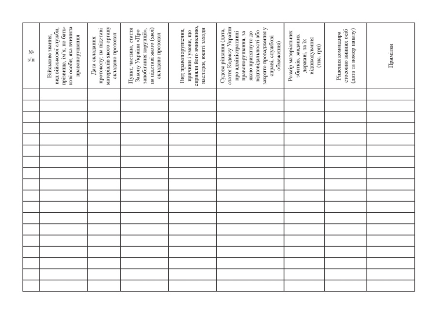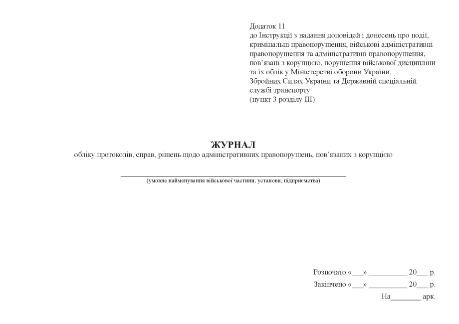 Приложение 11 к Инструкции по предоставлению докладов и донесений о событиях, уголовные правонарушения, военные административные правонарушения и административные правонарушения, связанные с коррупцией , нарушение военной дисциплинита их учет в Министерстве обороны Украины, Вооруженных Силах Украины и Государственной специальной службе транспорта (пункт 3 раздела III) .