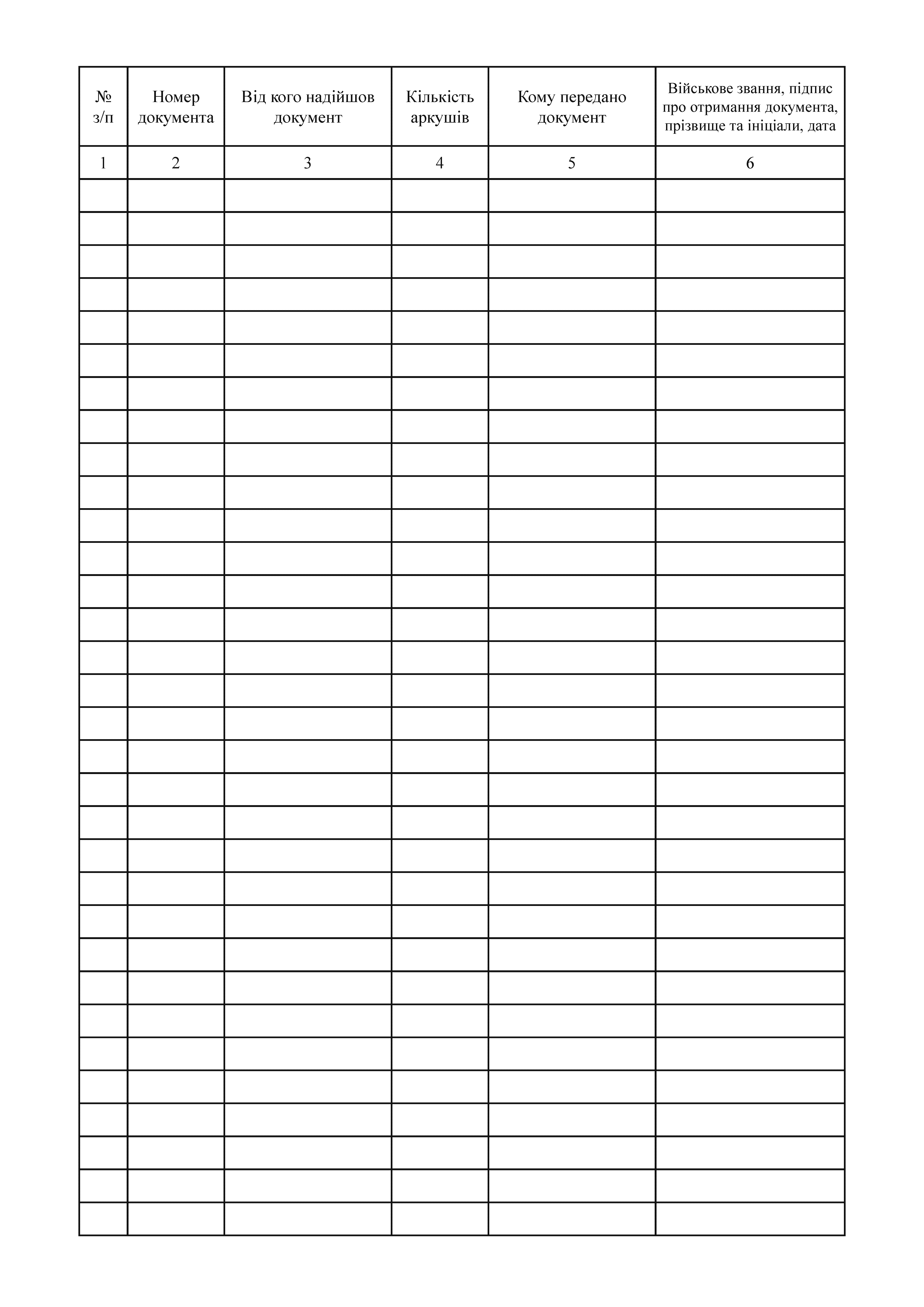 Журнал учета переходных служебных документов Приложение 38, согласно Приказа 40 МОУ.