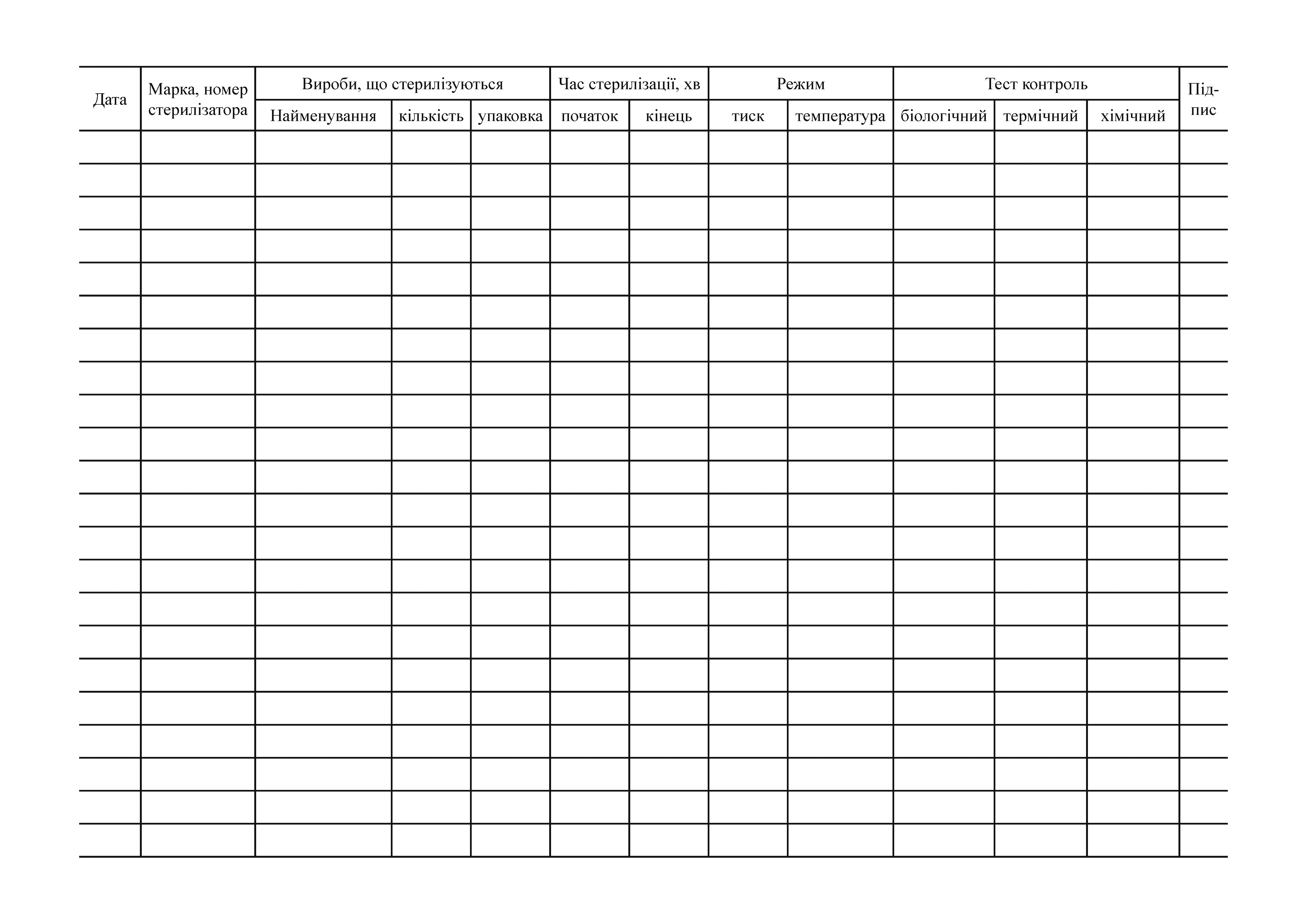 Журнал контроля работы стерилизаторов воздушного, парового автоклава Форма 257/о.