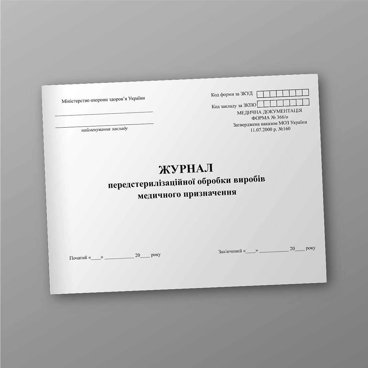Журнал предстерилизационной обработки изделий медицинского назначения Приказ 160 МЗ.