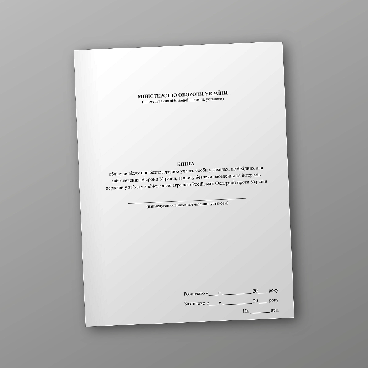 Книга учета справок о непосредственном участии лица в мероприятиях, необходимых для обеспечения обороны Украины, защиты безопасности населения и интересов государства в связи с военной агрессией Российской Федерации против Украины.