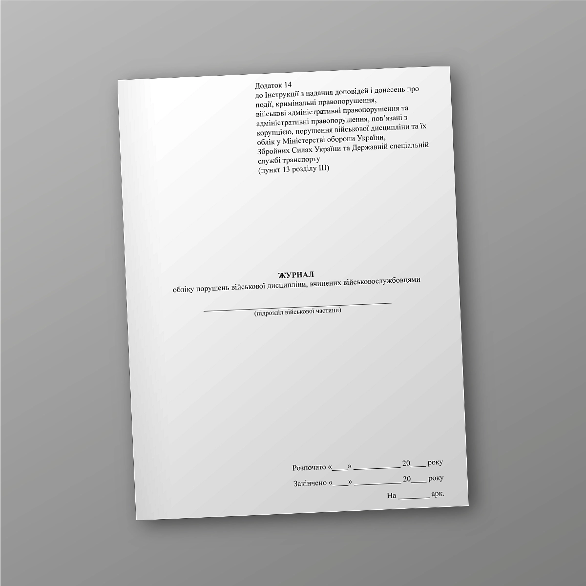 Журнал или книга воинского учета может быть выполнена в мягкой или твердой обложке. Если Вы не нашли нужную книгу или количество страниц и прочее нужно сделать под вашу задачу напишіть нам на e-mail [email protected], мы обязательно свяжемся с Вами. Все военные журналы мы печатаем в соответствии с приказом МО Украины.