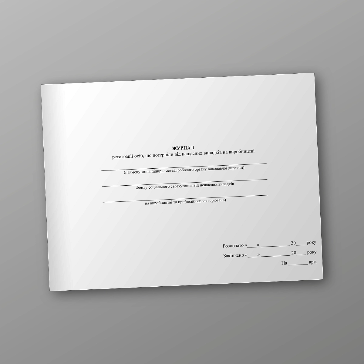 Заказать Журнал регистрации лиц, пострадавших от несчастных случаев на производстве.