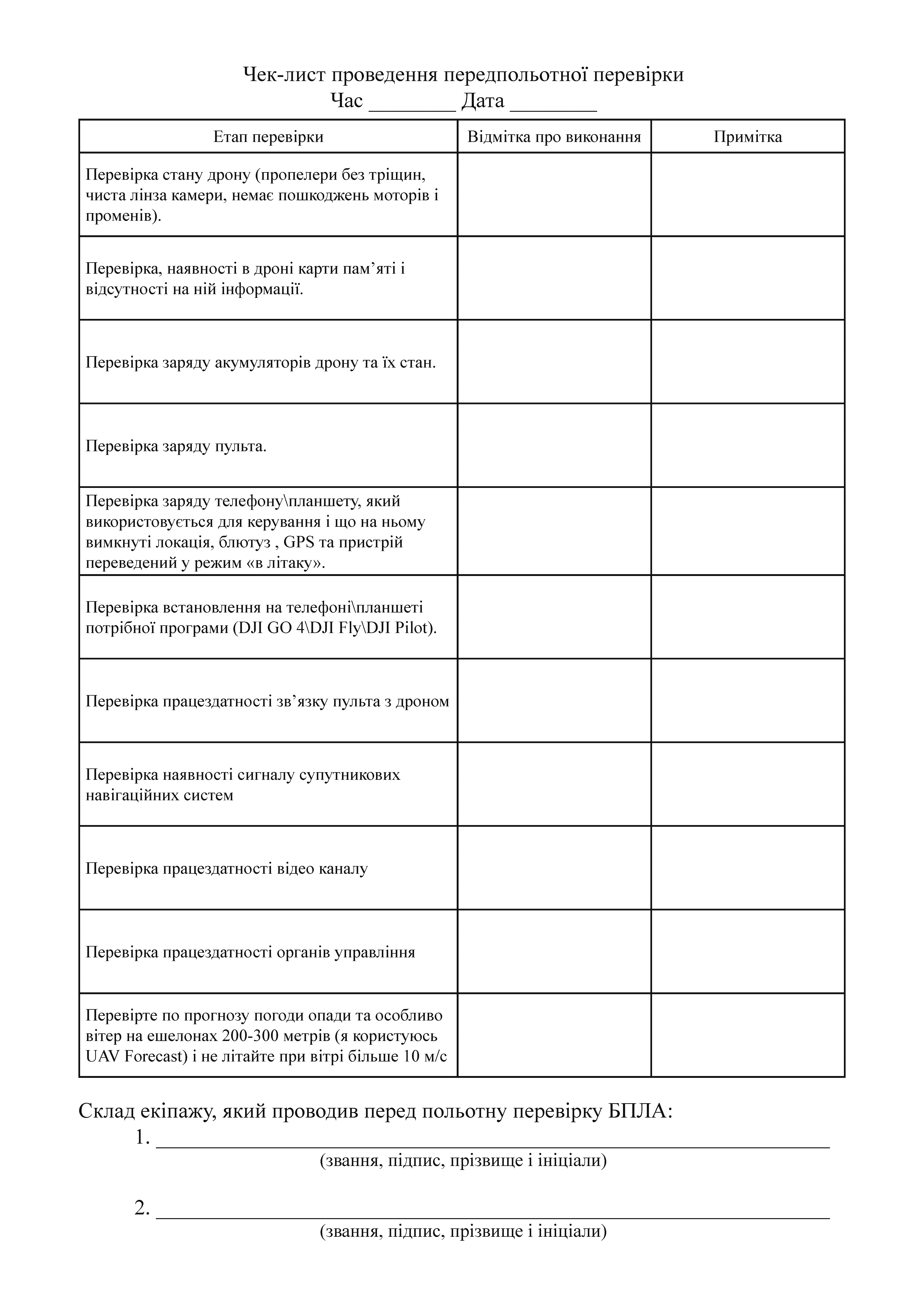 Журнал учета проведения предполетной проверки беспилотных летательных аппаратов.