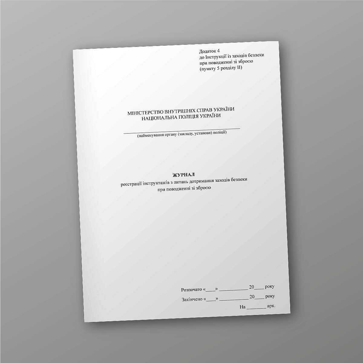 Журнал или книга согласно приказам Министерства Внутренних Дел Украины может быть выполнена в мягкой или твердой обложке. Если Вы не нашли нужную книгу или количество страниц и прочее нужно сделать под вашу задачу напишіть нам на e-mail [email protected], мы обязательно свяжемся с Вами.