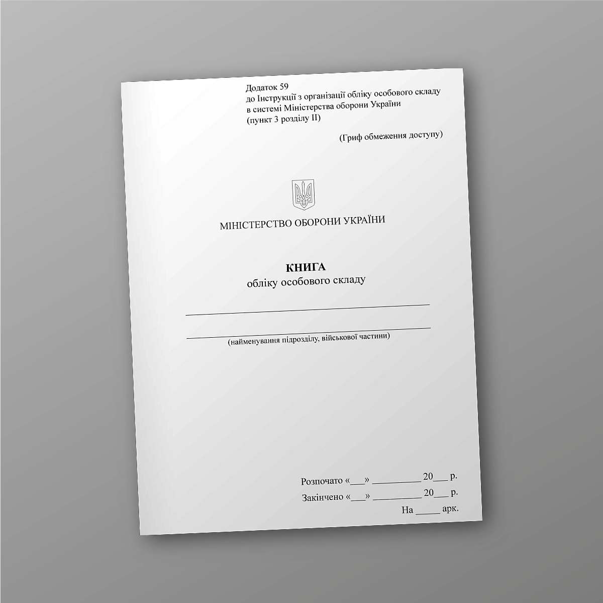 Журнал или книга воинского учета может быть выполнена в мягкой или твердой обложке. Если Вы не нашли нужную книгу для ВСУ или количество страниц и прочее нужно сделать под вашу задачунапишіть нам на e-mail [email protected], мы обязательно свяжемся с Вами. Все военные журналы мы печатаем в соответствии с приказом МО Украины.