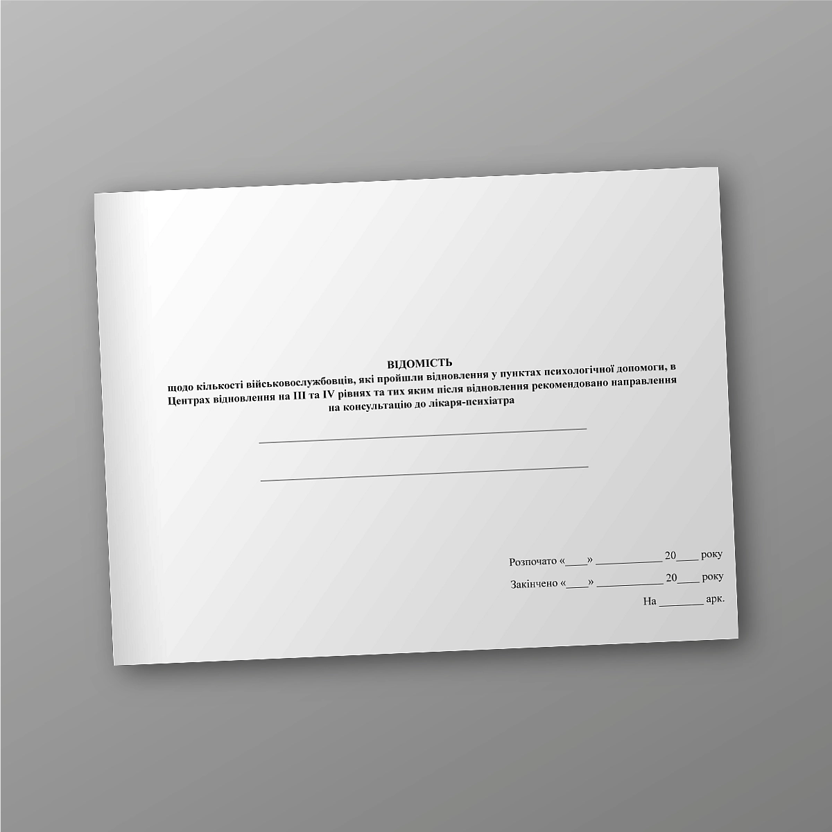 Купить Ведомость о количестве военнослужащих, прошедших восстановление в пунктах психологической помощи, в Центрах восстановления на III и IV уровнях и тех после восстановления рекомендовано направление на консультацию к врачу-психиатру.