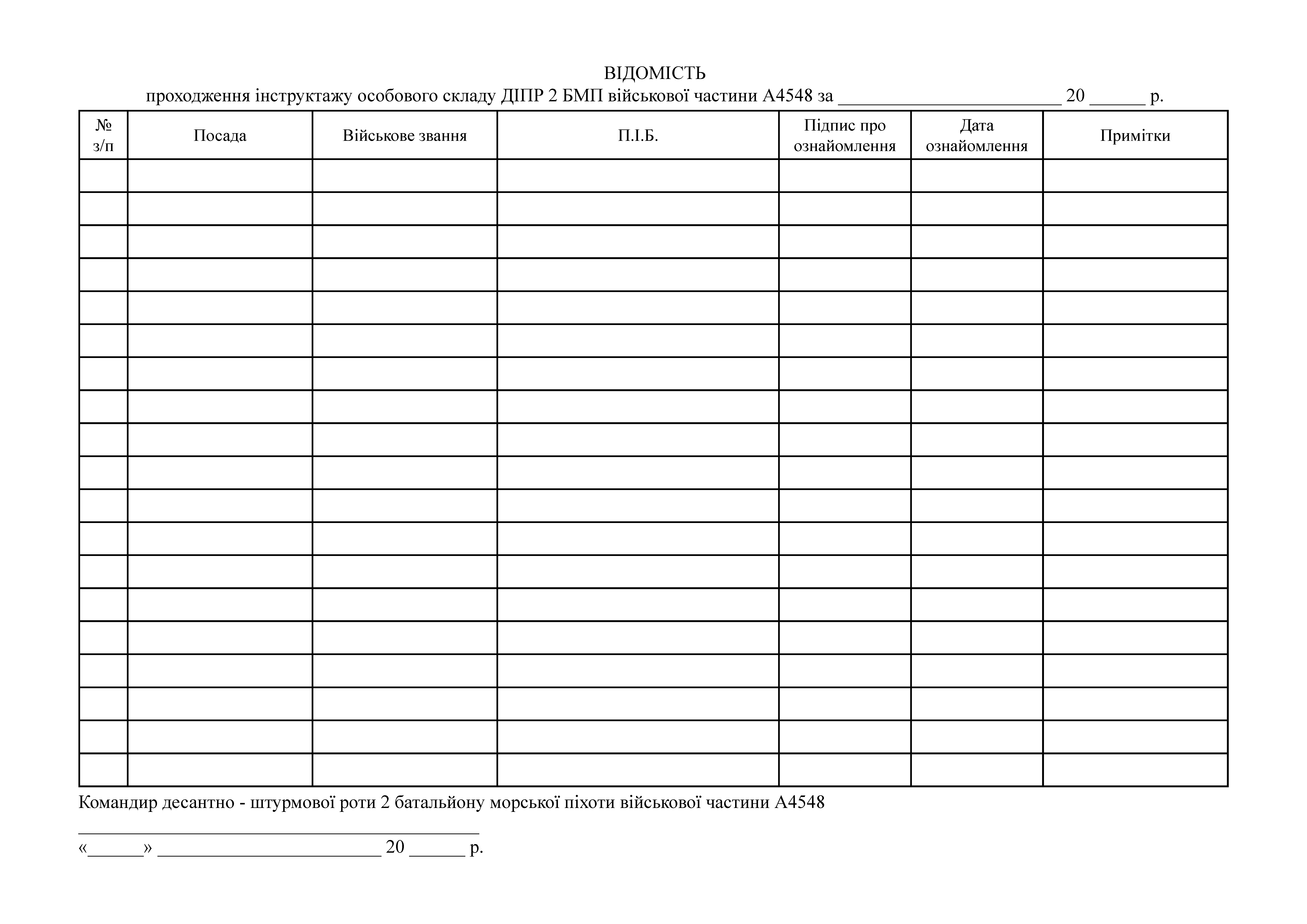 Ведомость прохождения инструктажа по запрету фото, видео фиксации военной техники, личного состава, мест постоянной и временной дислокации.