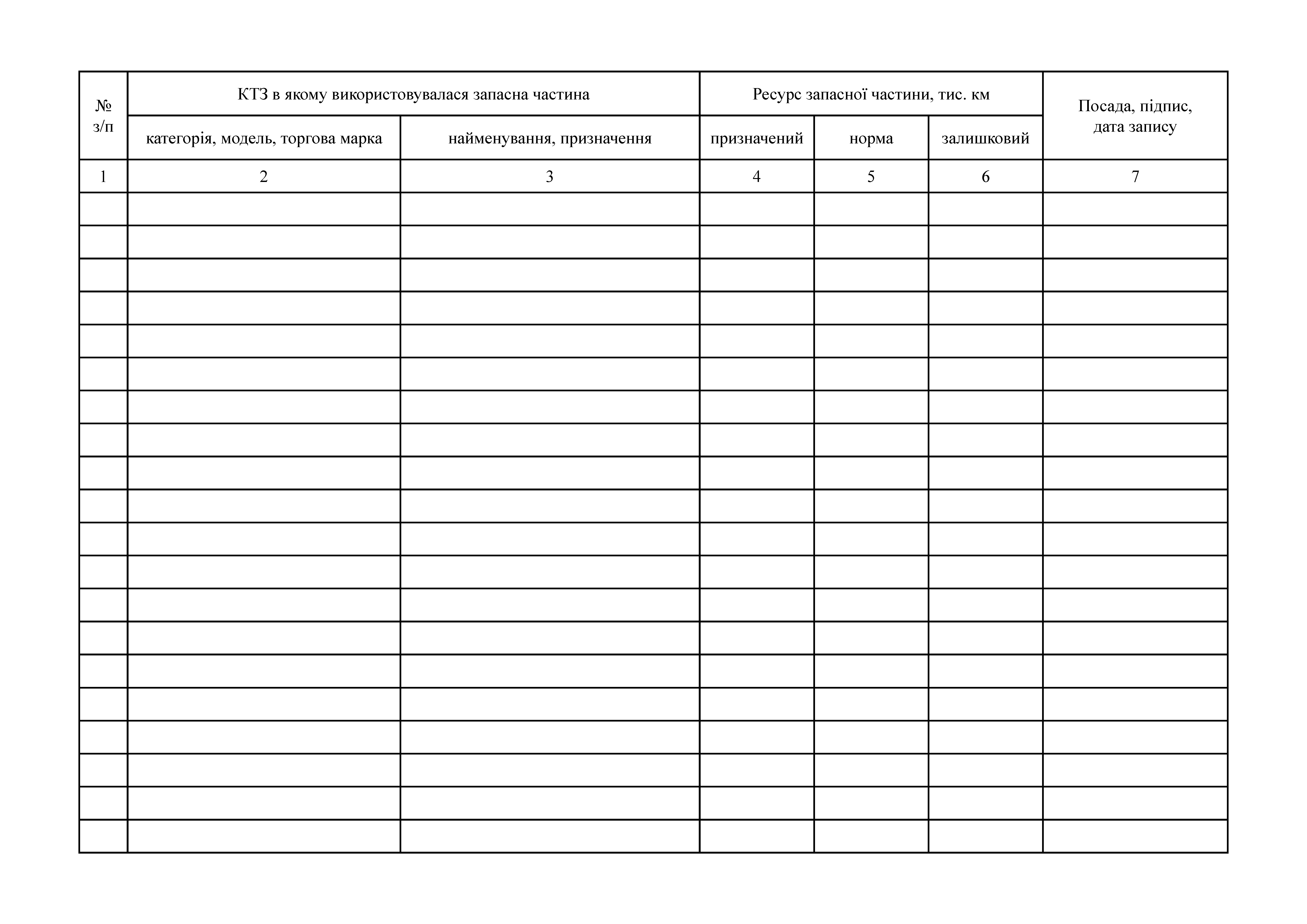 Журнал учета запасных частей