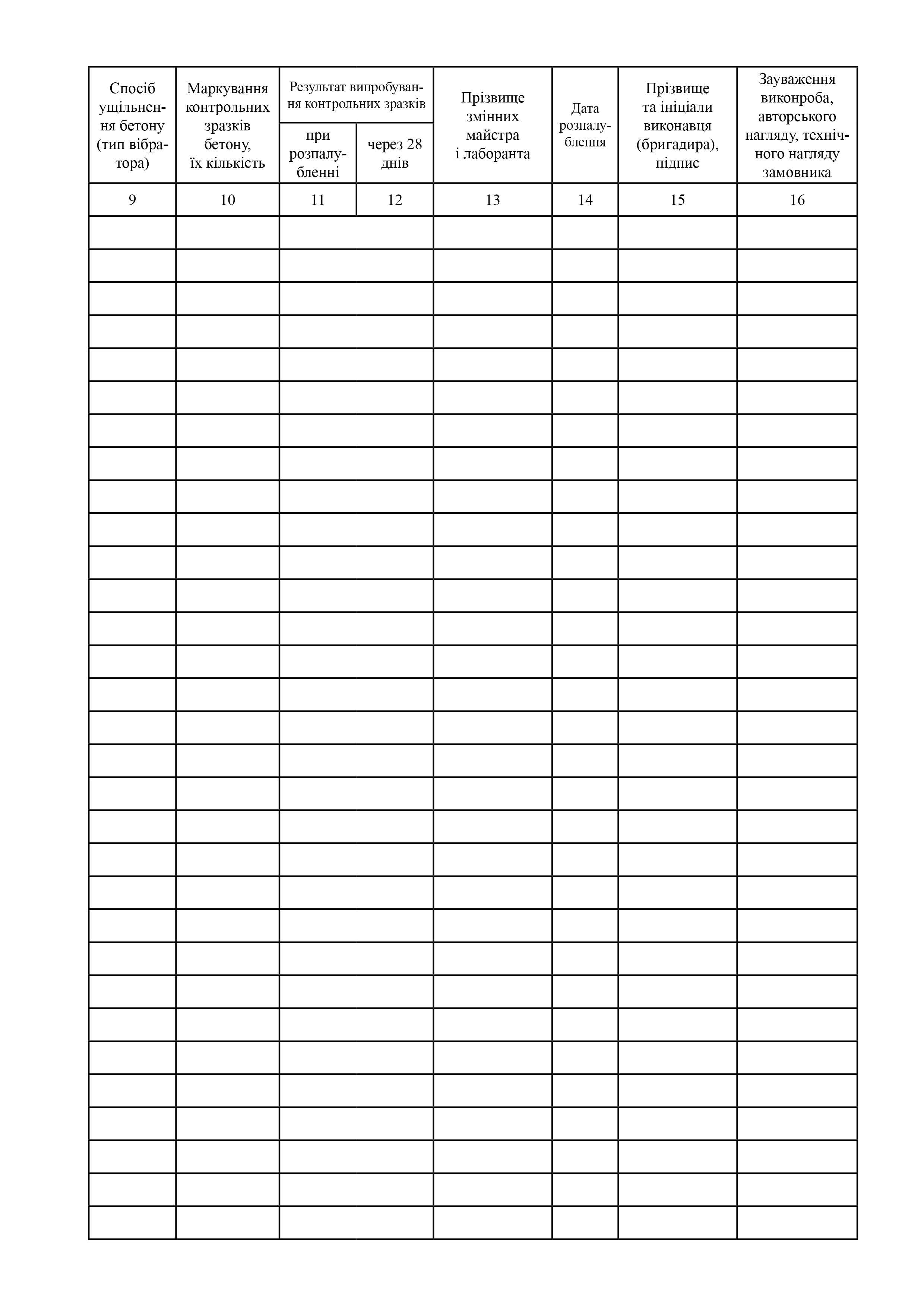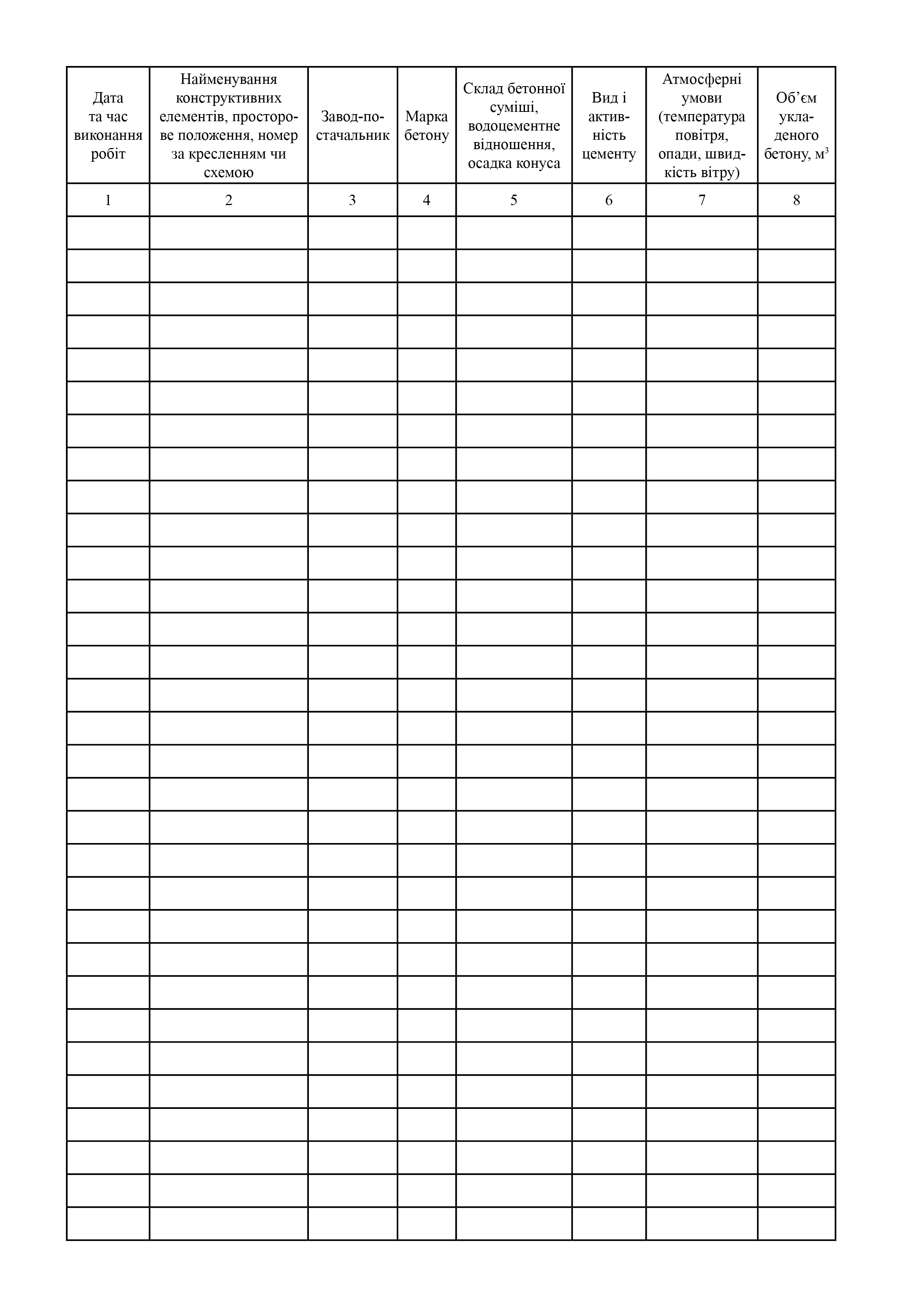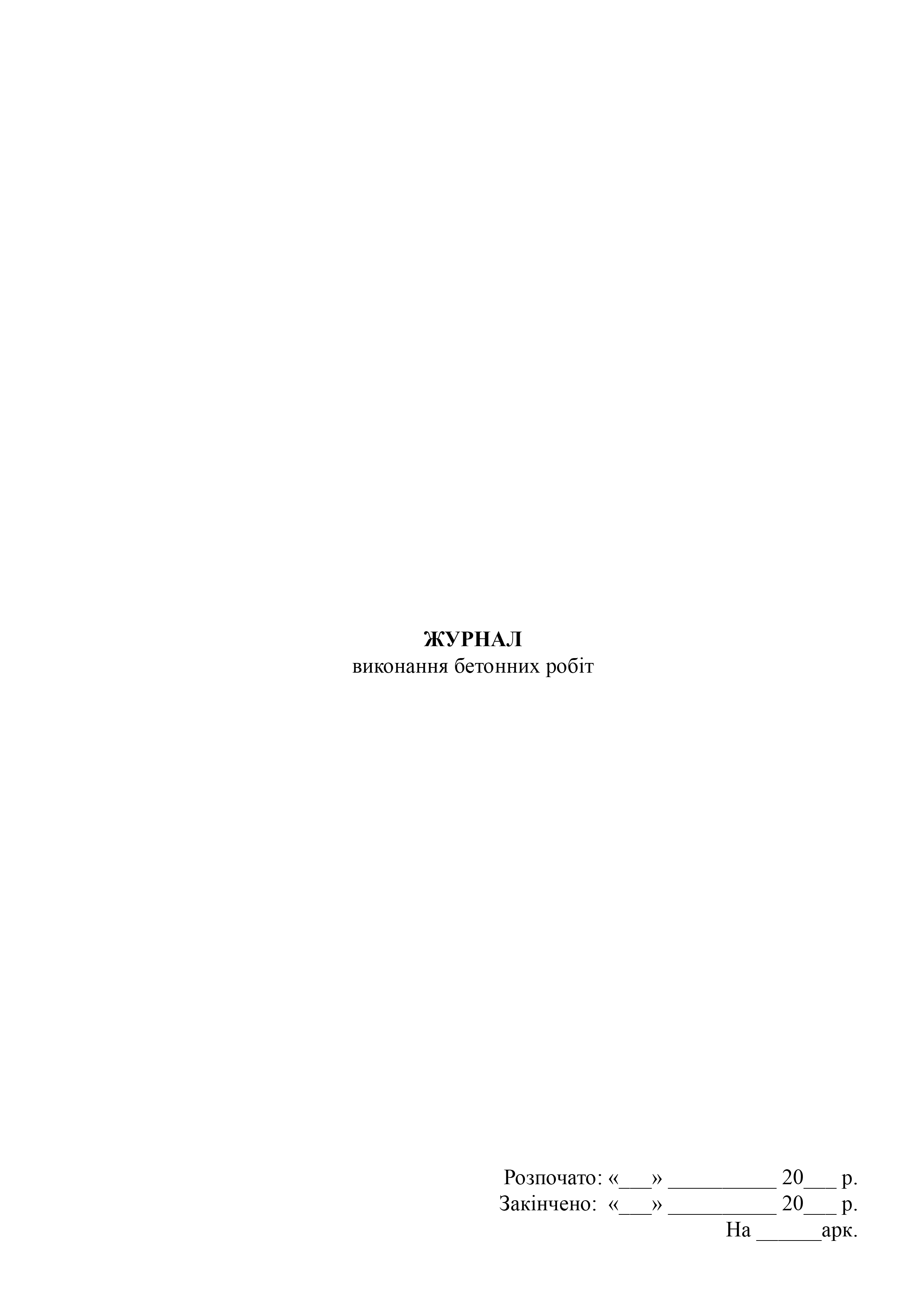 Журнал выполнения бетонных работ.