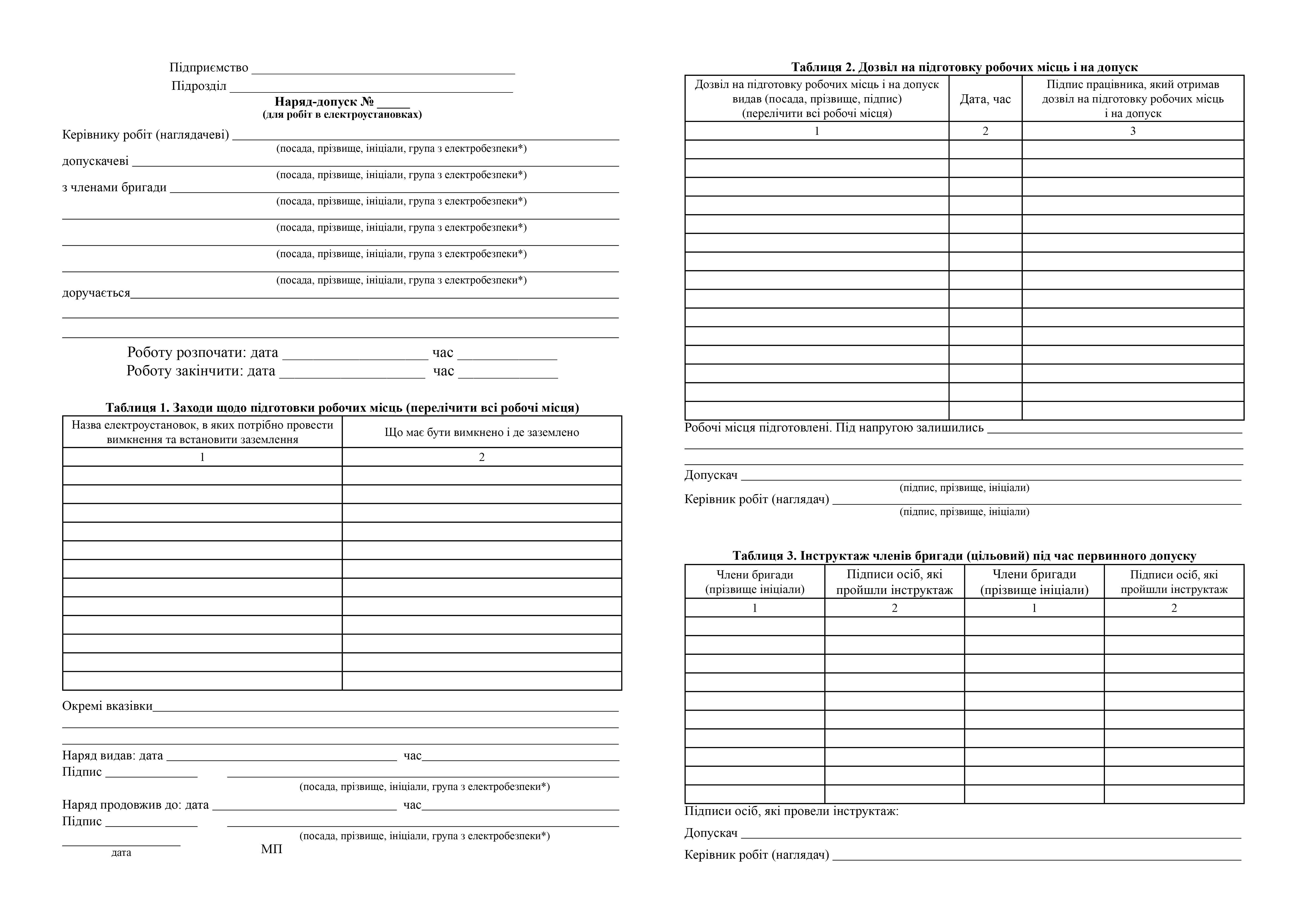 Наряд-допуск для работ на электроустановках.