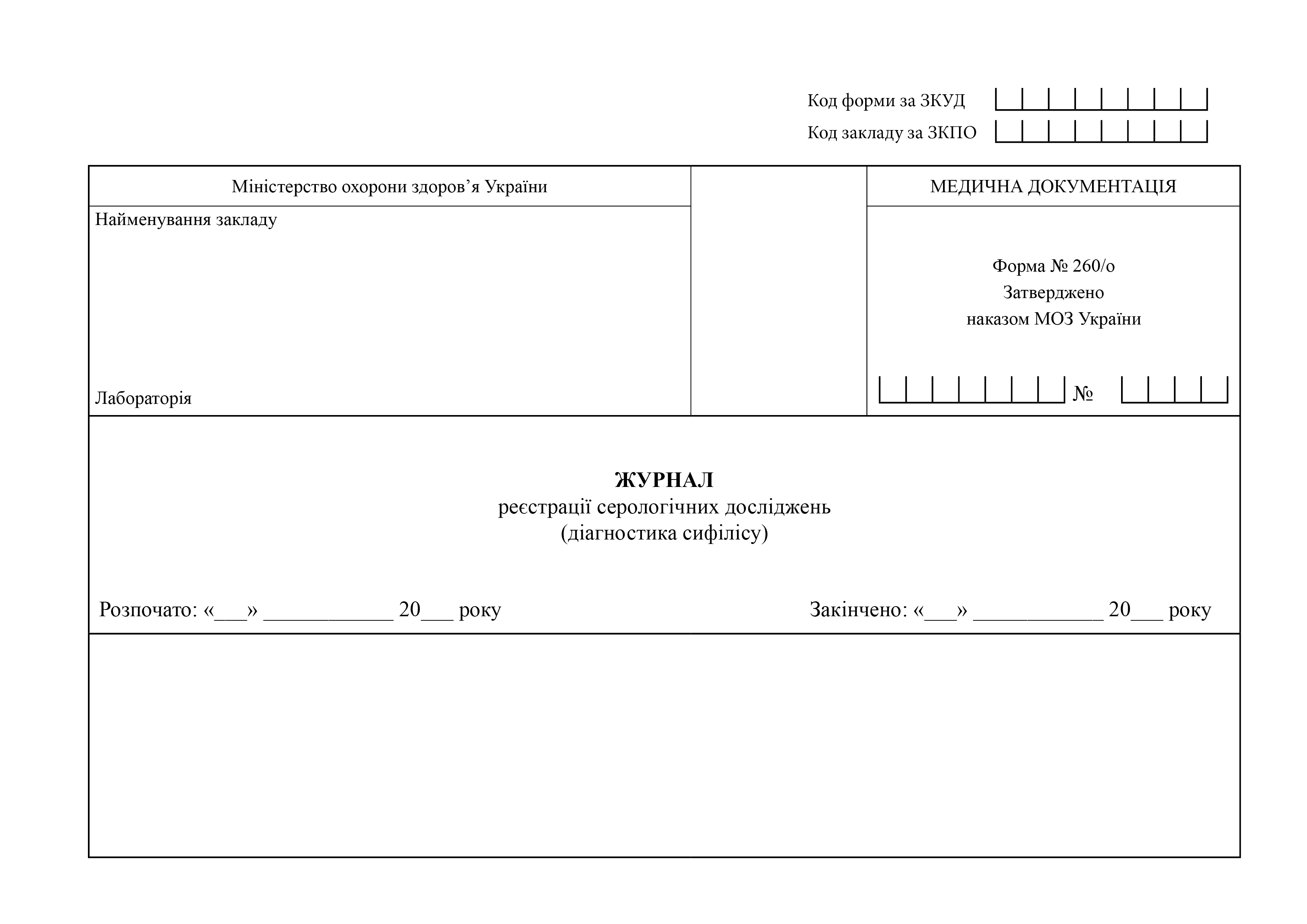 Купить Журнал регистрации серологических исследований (диагностика сифилиса).