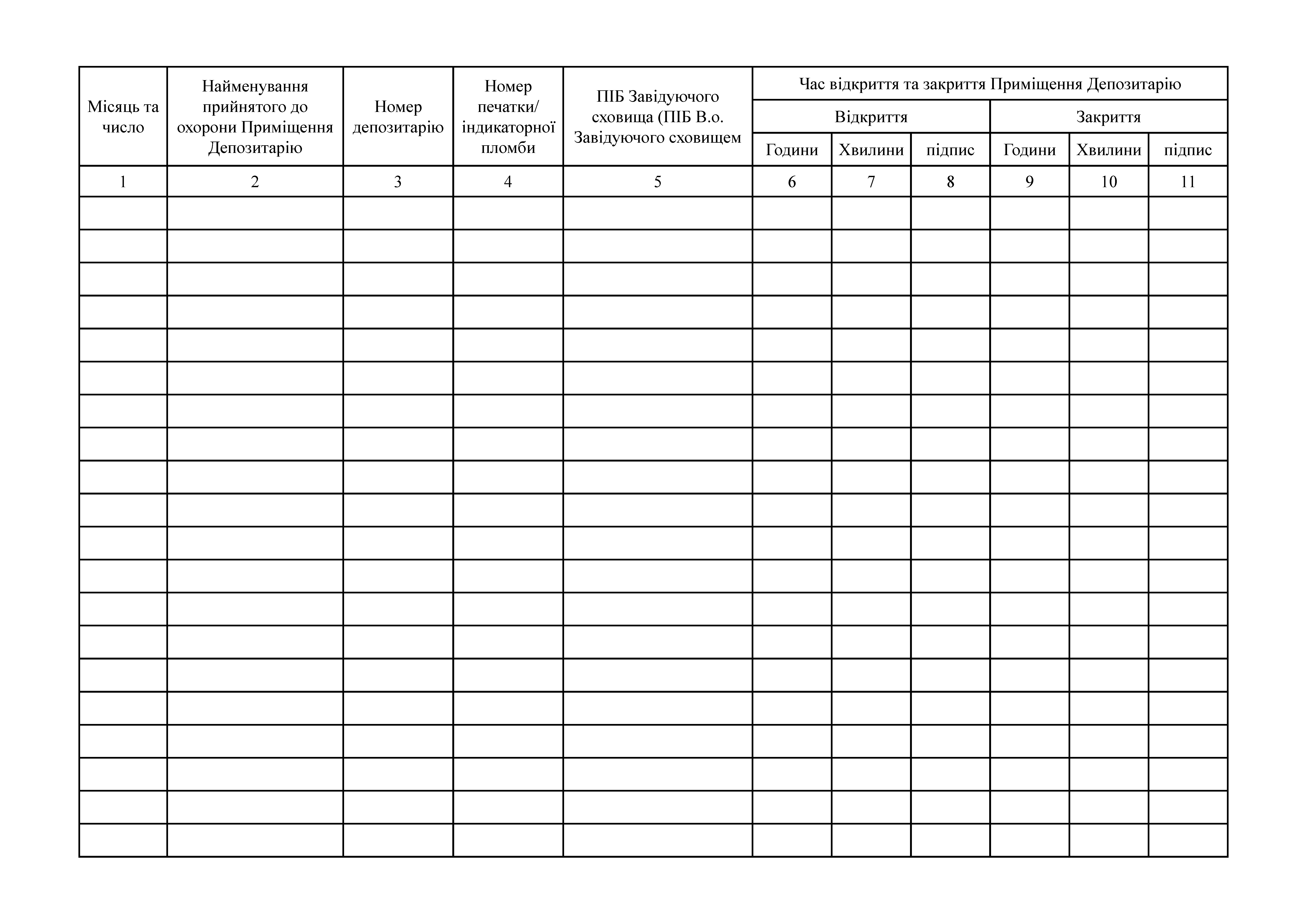 Контрольный журнал регистрации открытия, закрытия и опечатки Помещение/Депозитария НБУ.