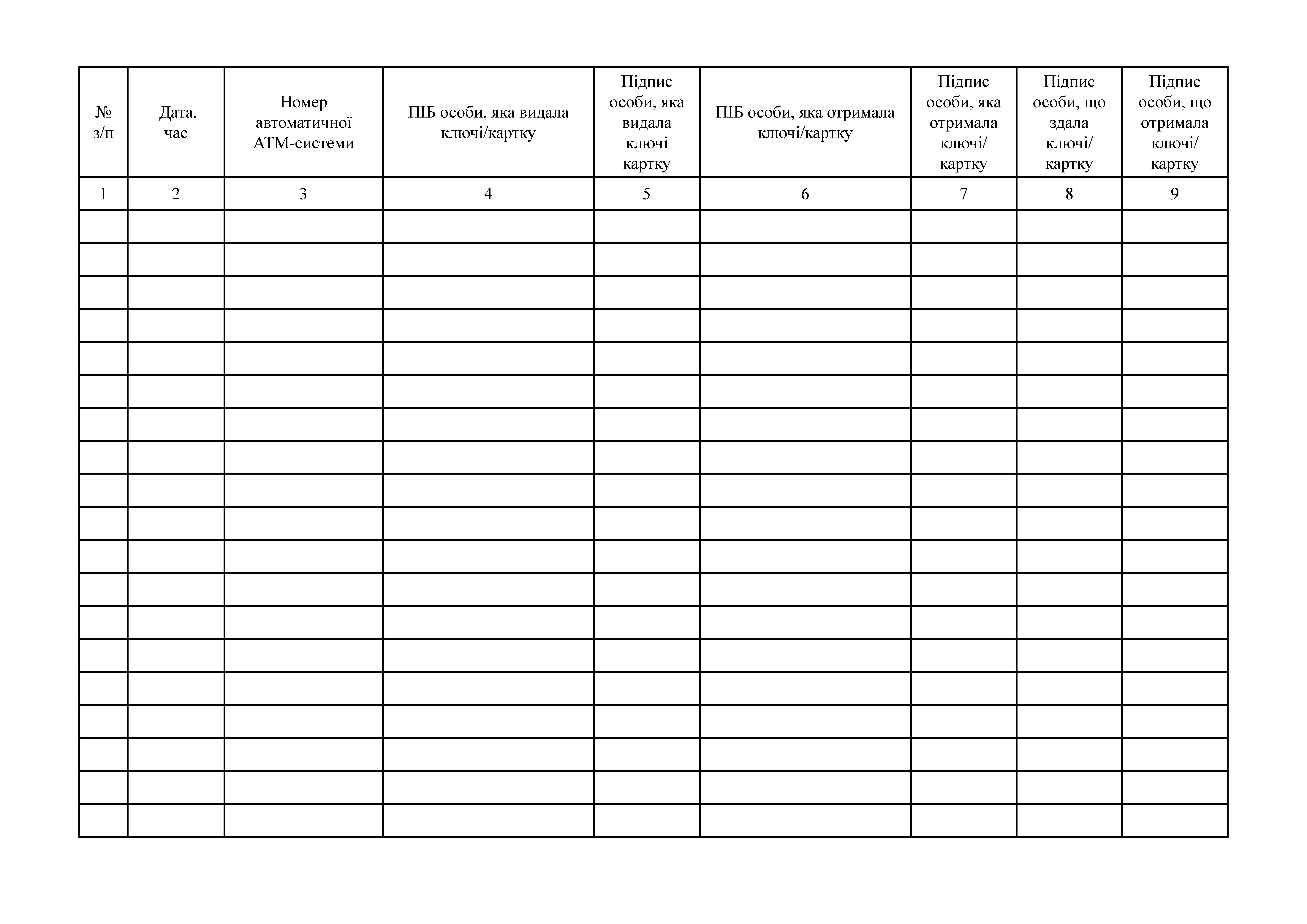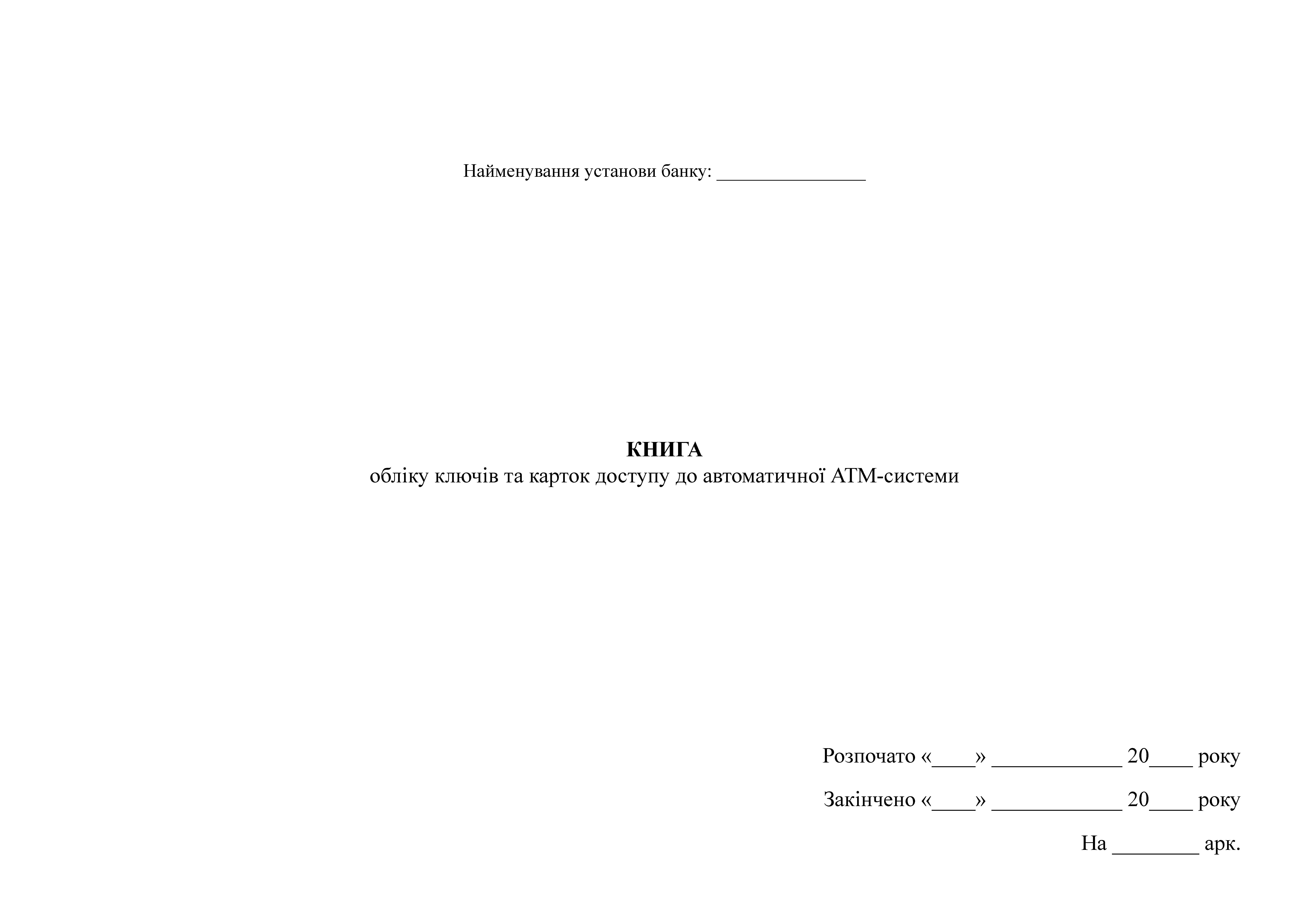 Книга учета ключей и карт доступа к автоматической АТМ-системе НБУ.