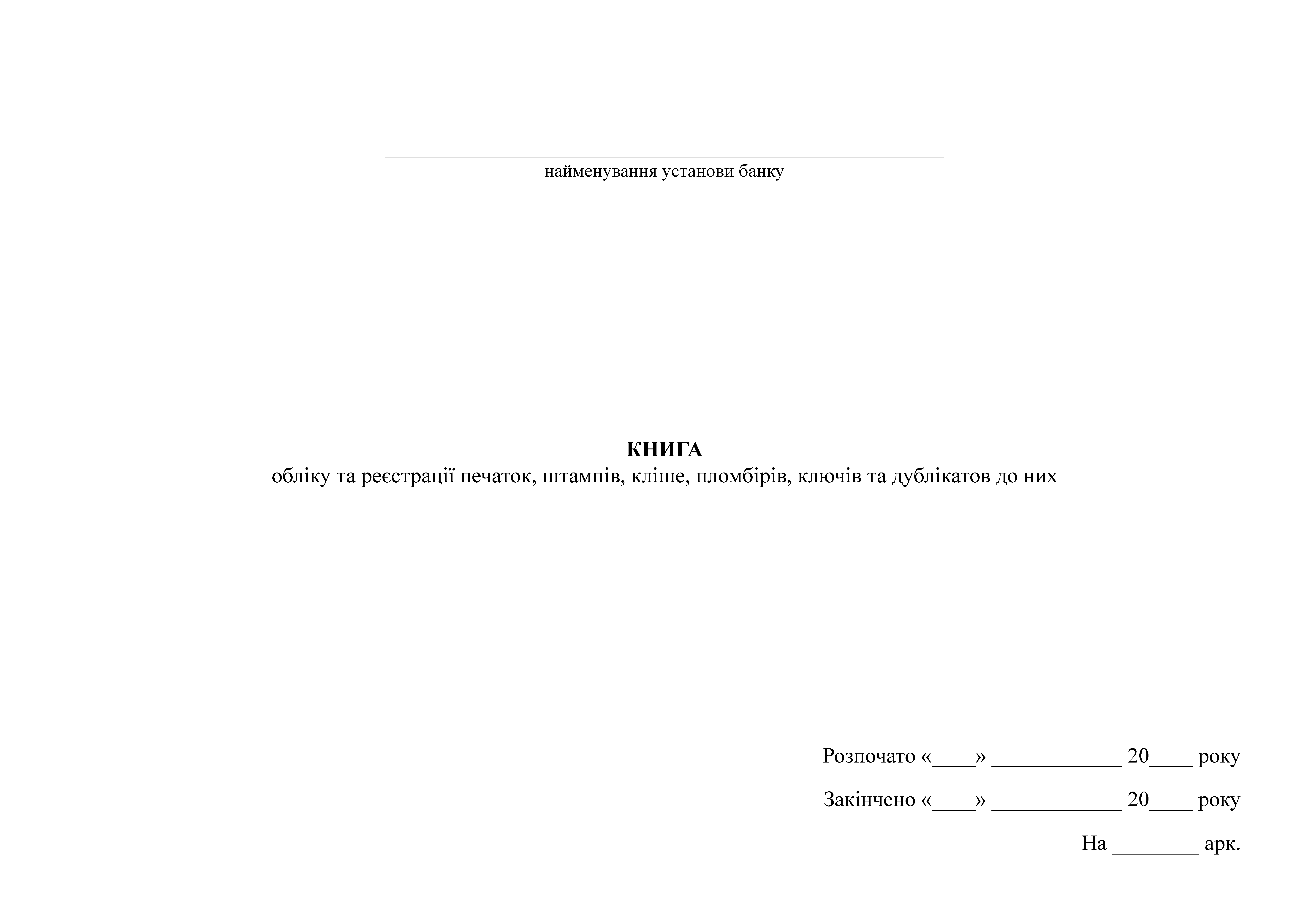 Книга учета и регистрации печатей, штампов, клише, пломбиров, ключей и дубликатов к ним НБУ.