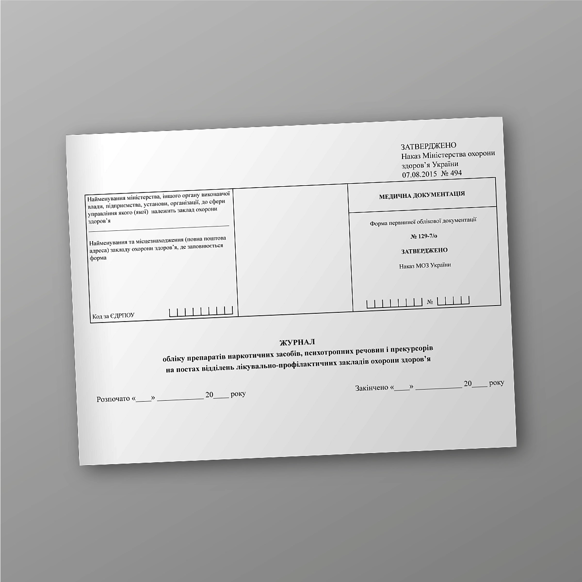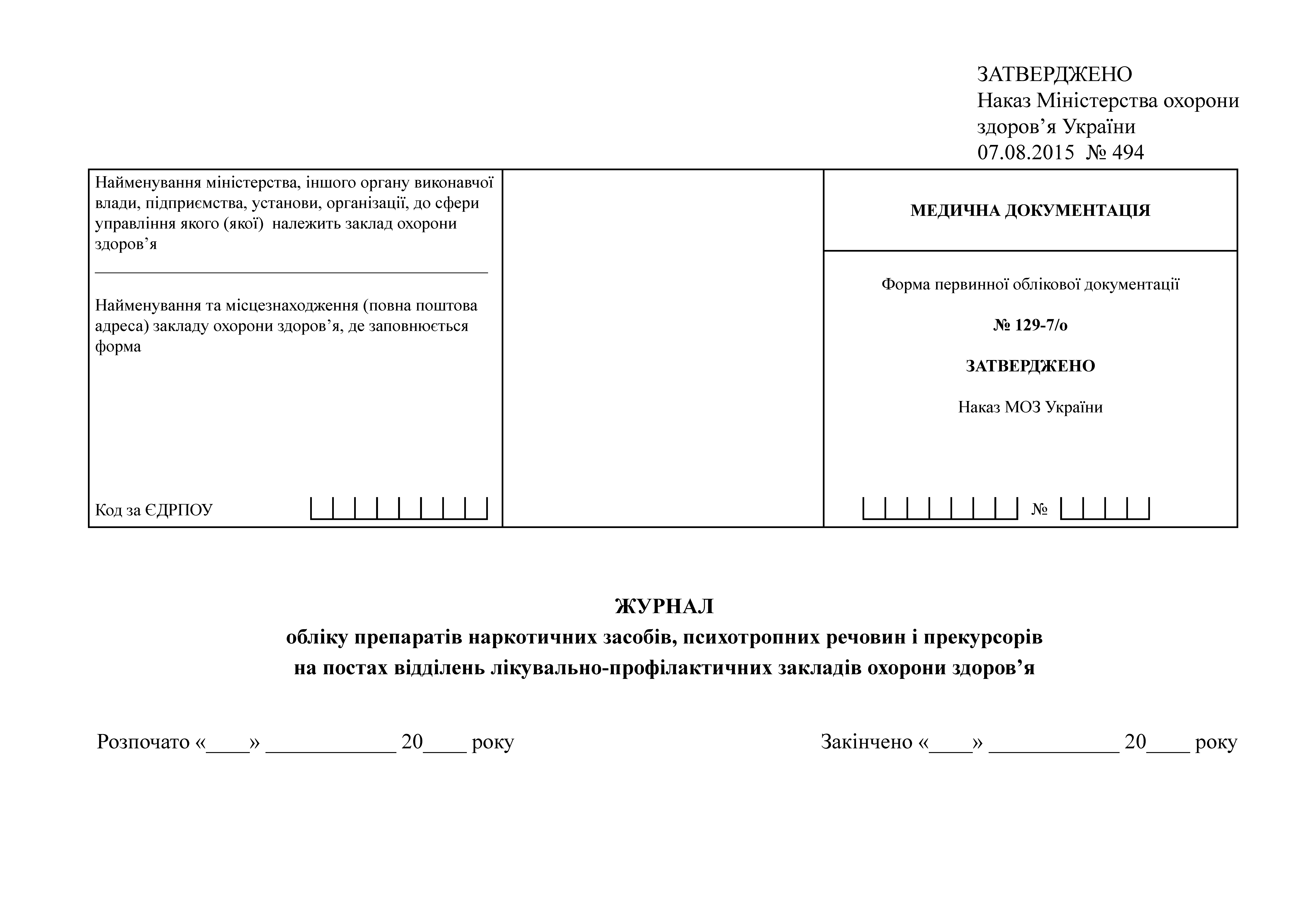 Приказ 494 МЗ форма №129-7/о.