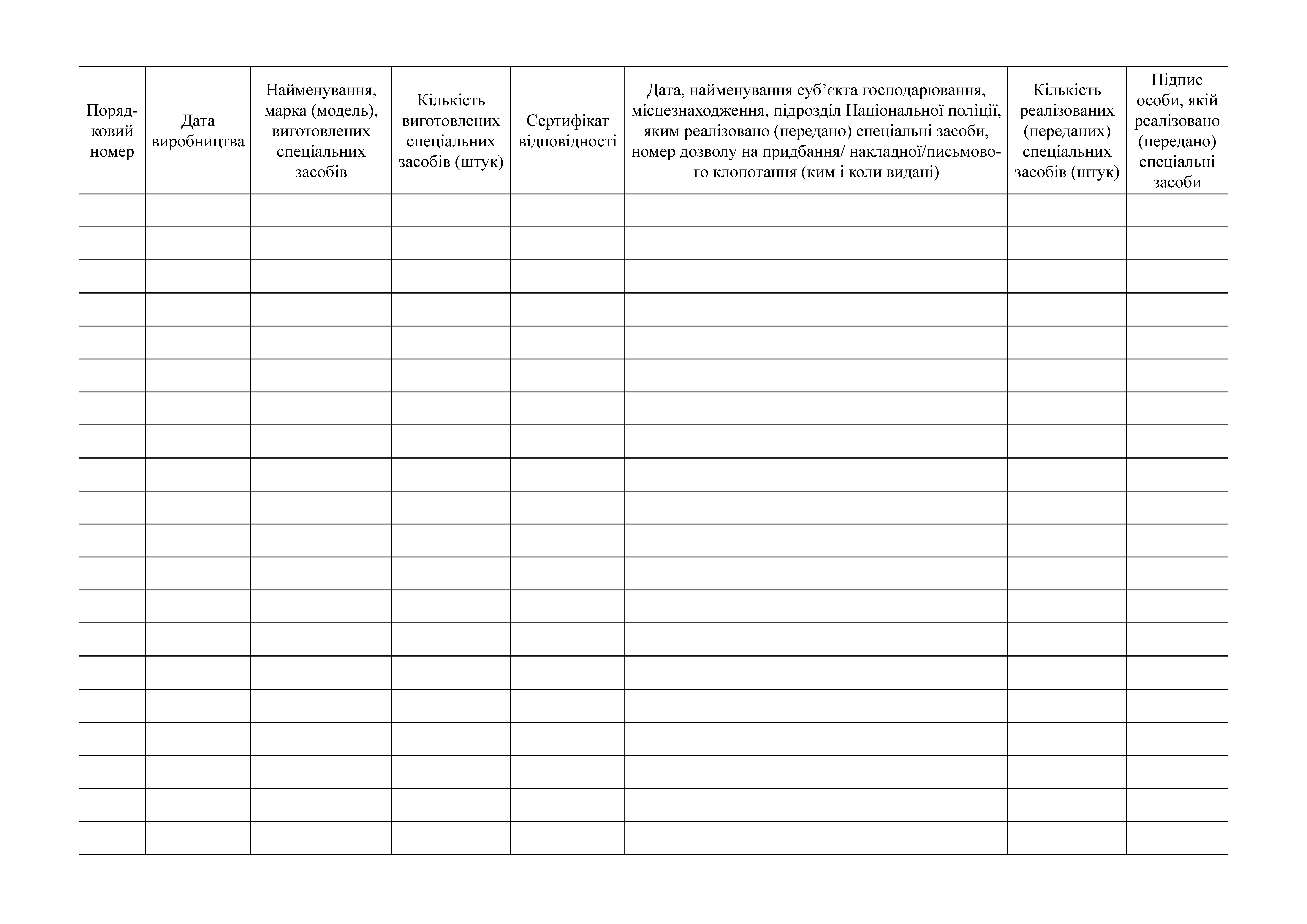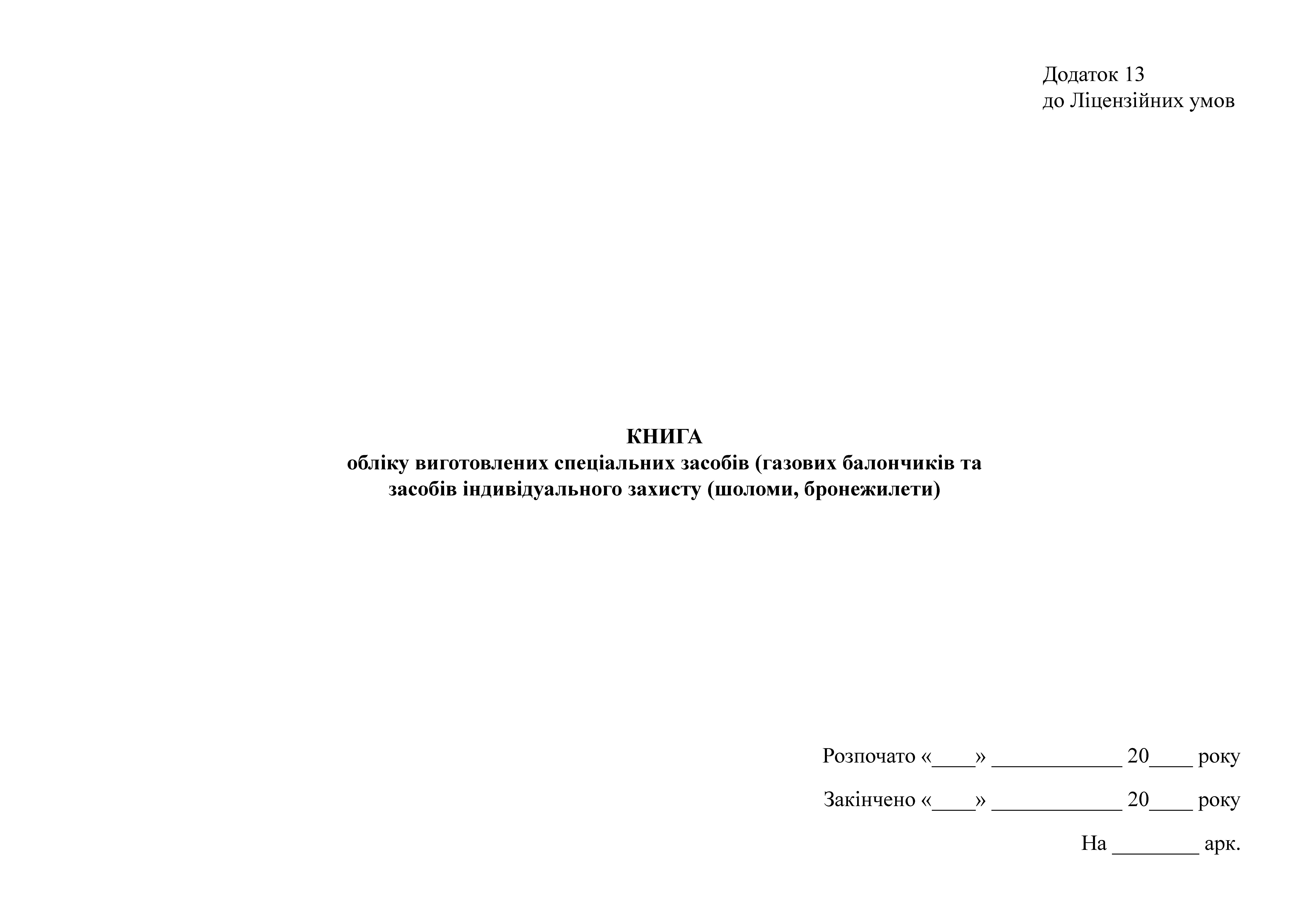 Книга учета изготовленных специальных средств (газовых баллончиков и средств индивидуальной защиты (шлемы, бронежилеты).
