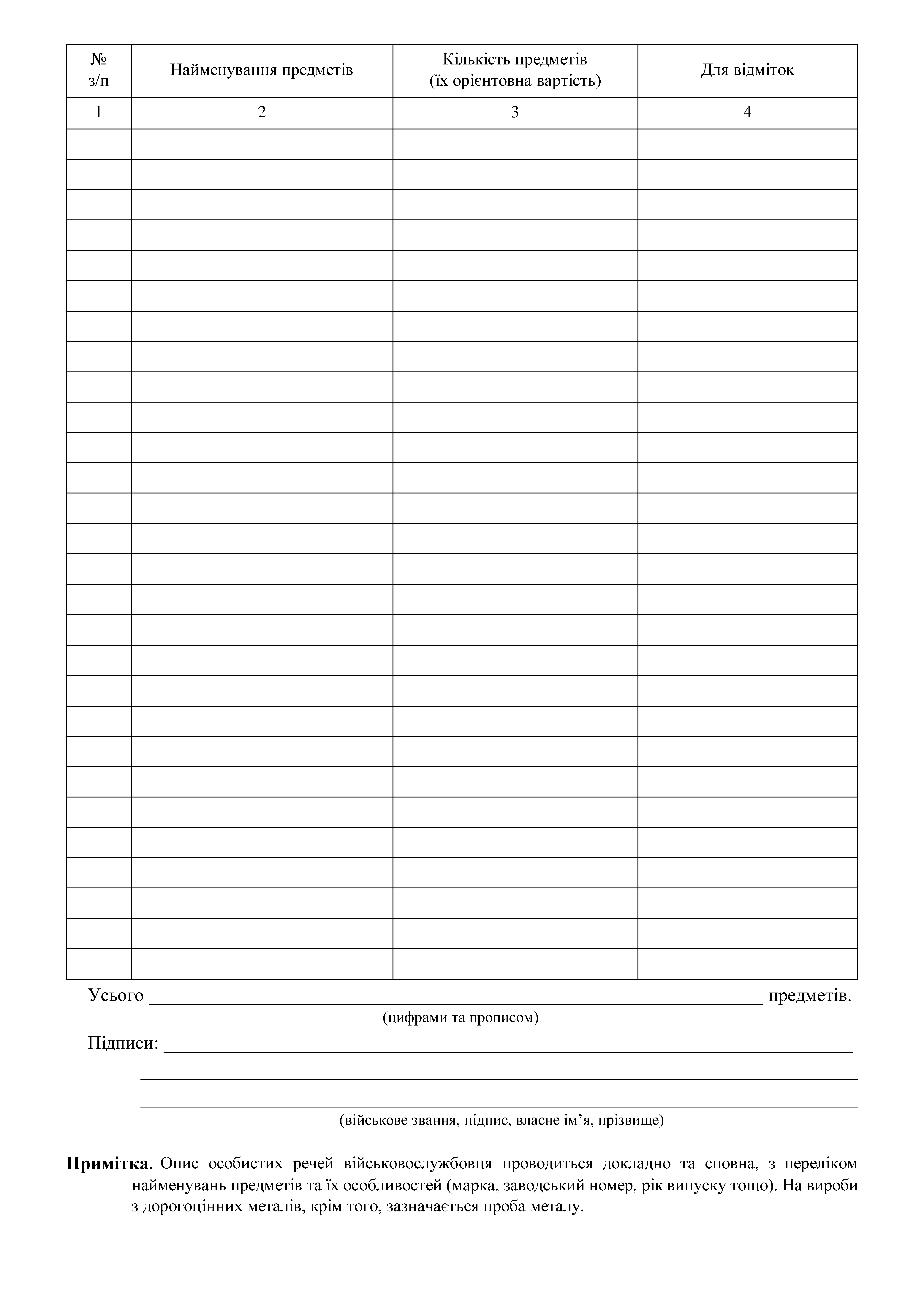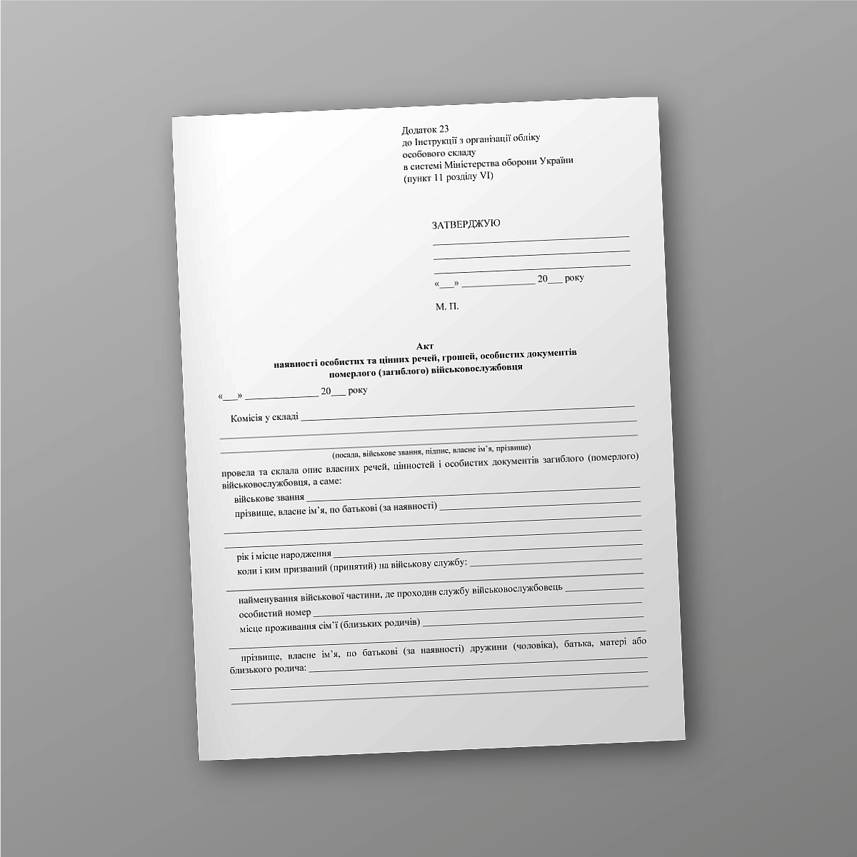 Купить Акт наличия личных и ценных вещей, денег, личных документов умершего (погибшего) военнослужащего.