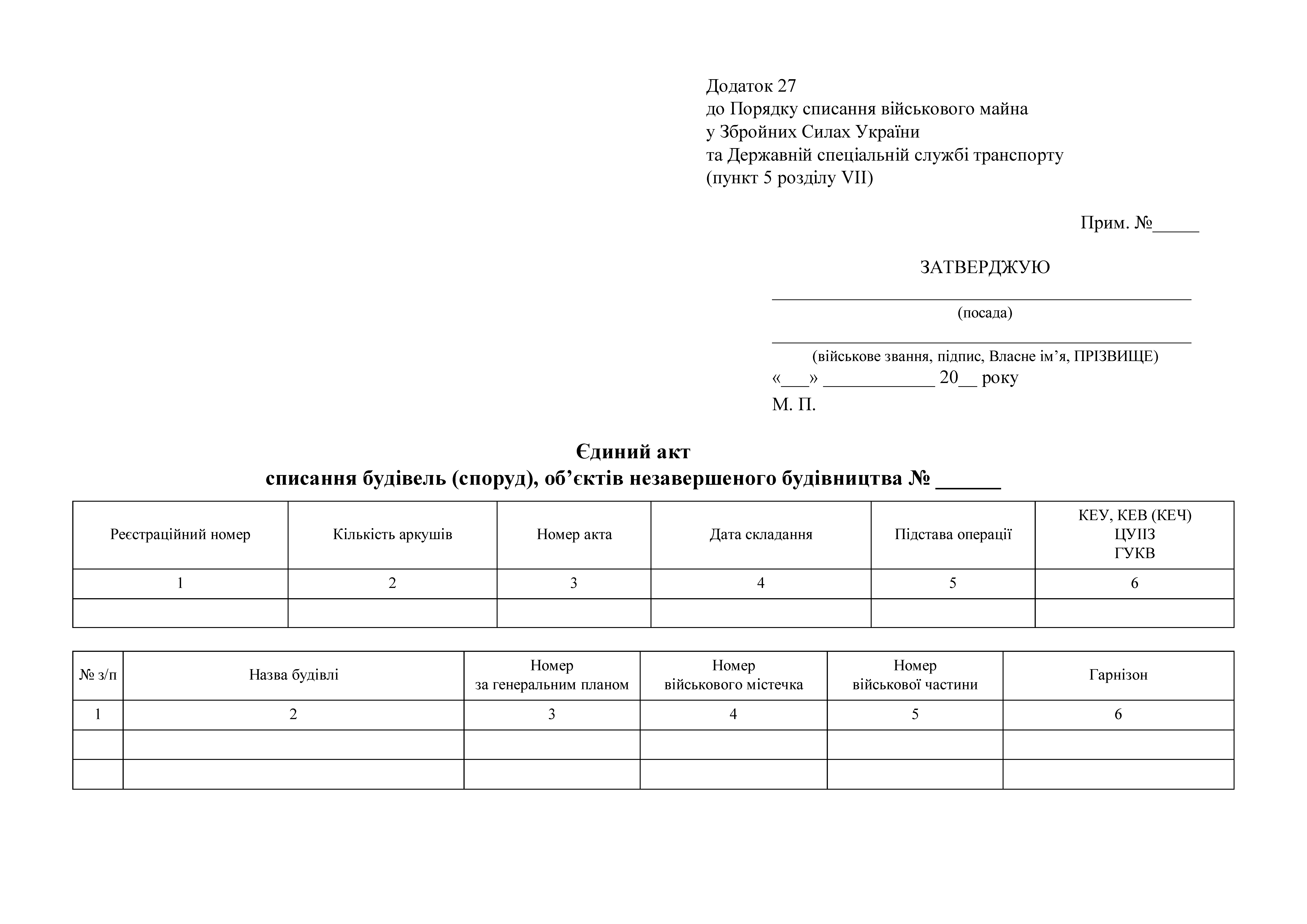 Купить Единый акт списания зданий (сооружений), объектов незавершенного строительства, два листа.