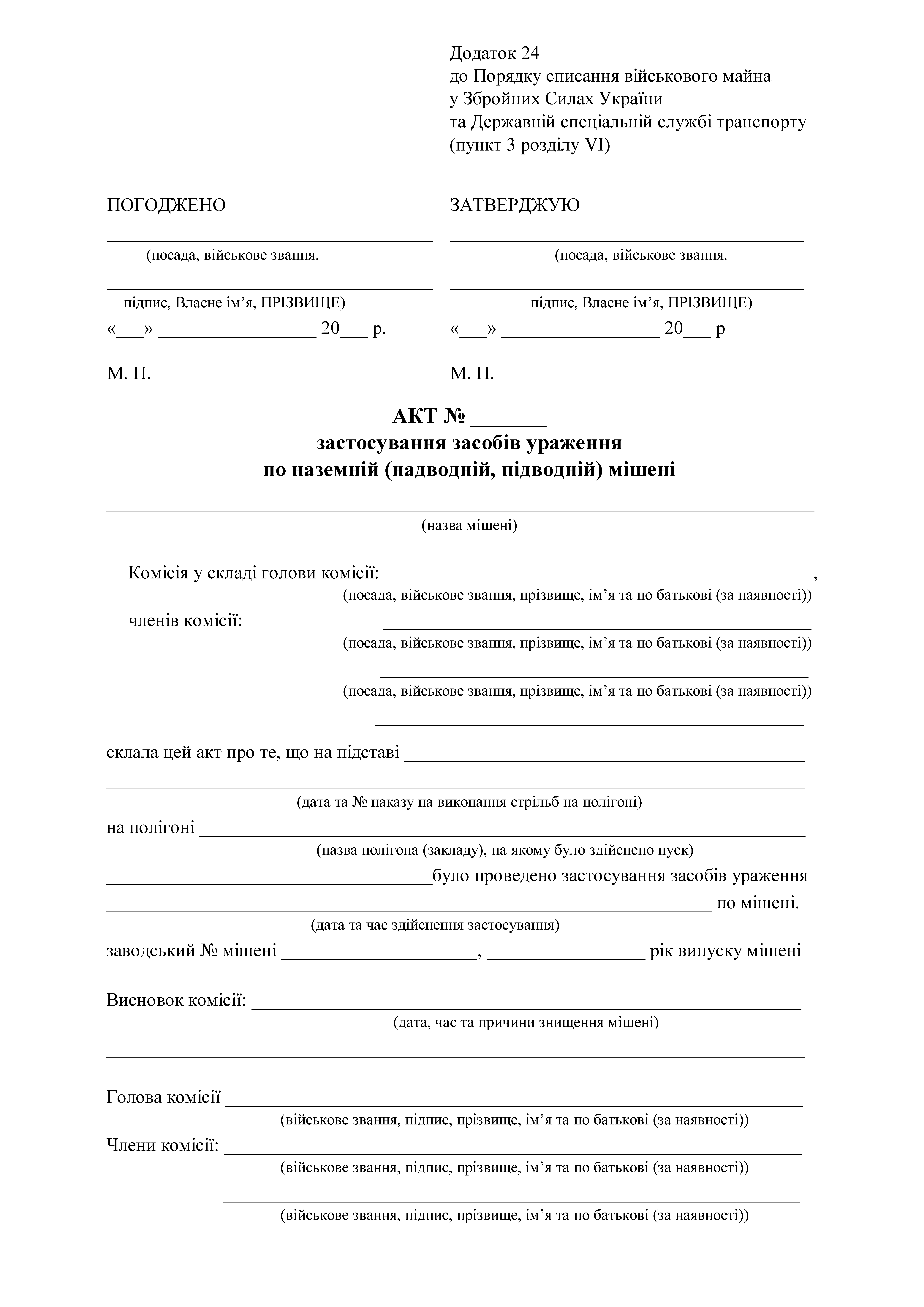 Купить Акт применения средств поражения по наземной (надводной, подводной) мишени.
