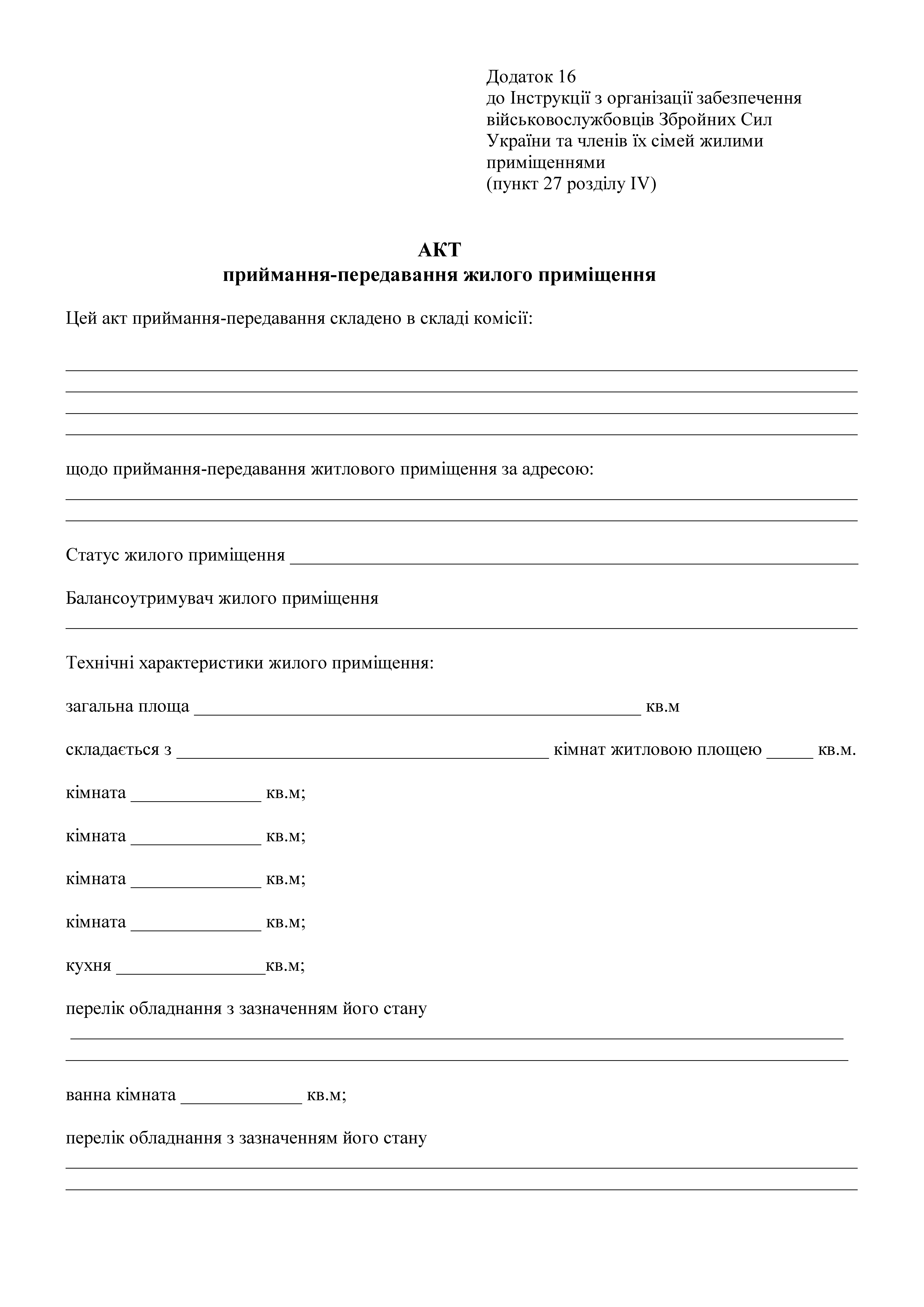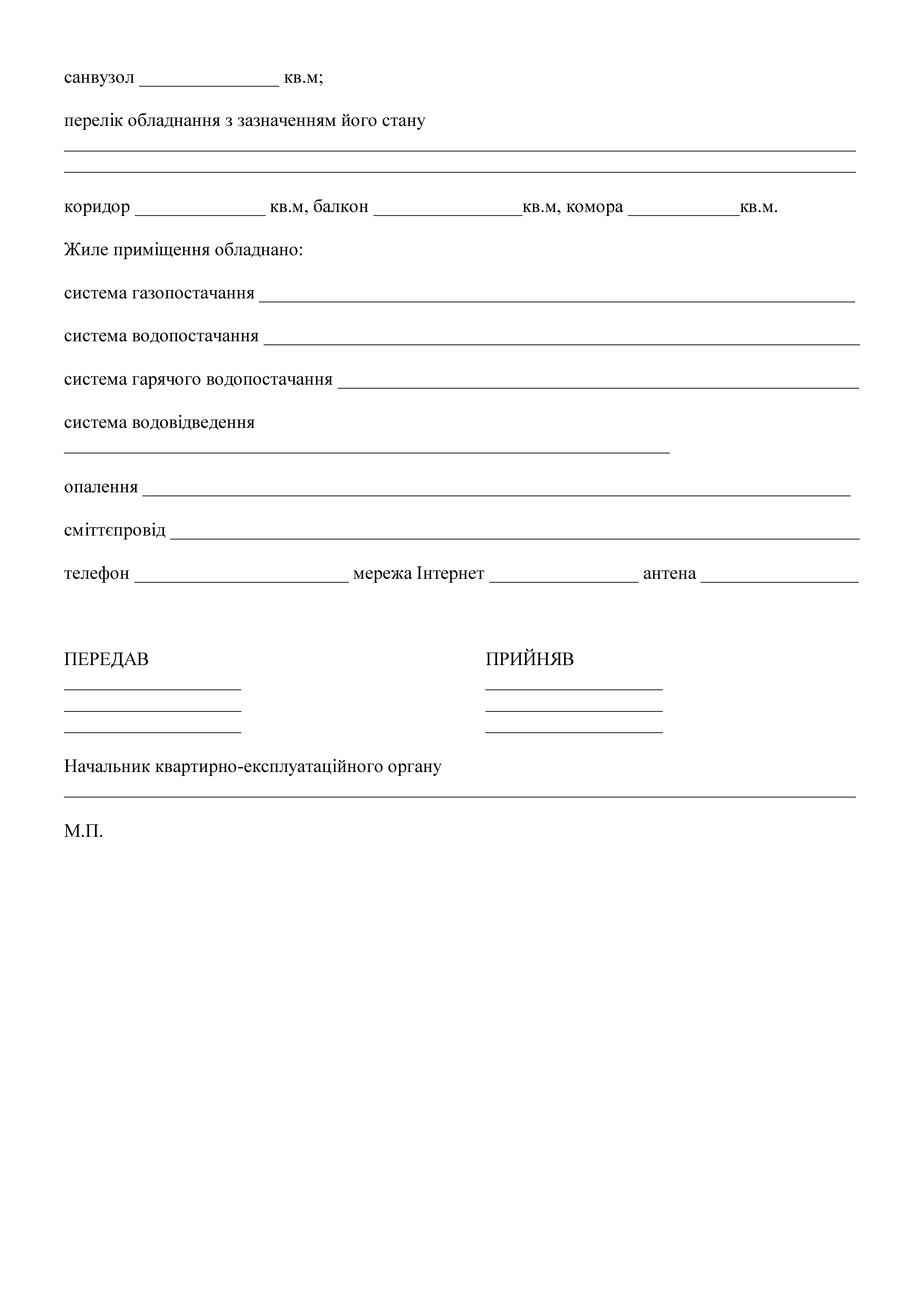 Акт приемки-передачи жилого помещения.