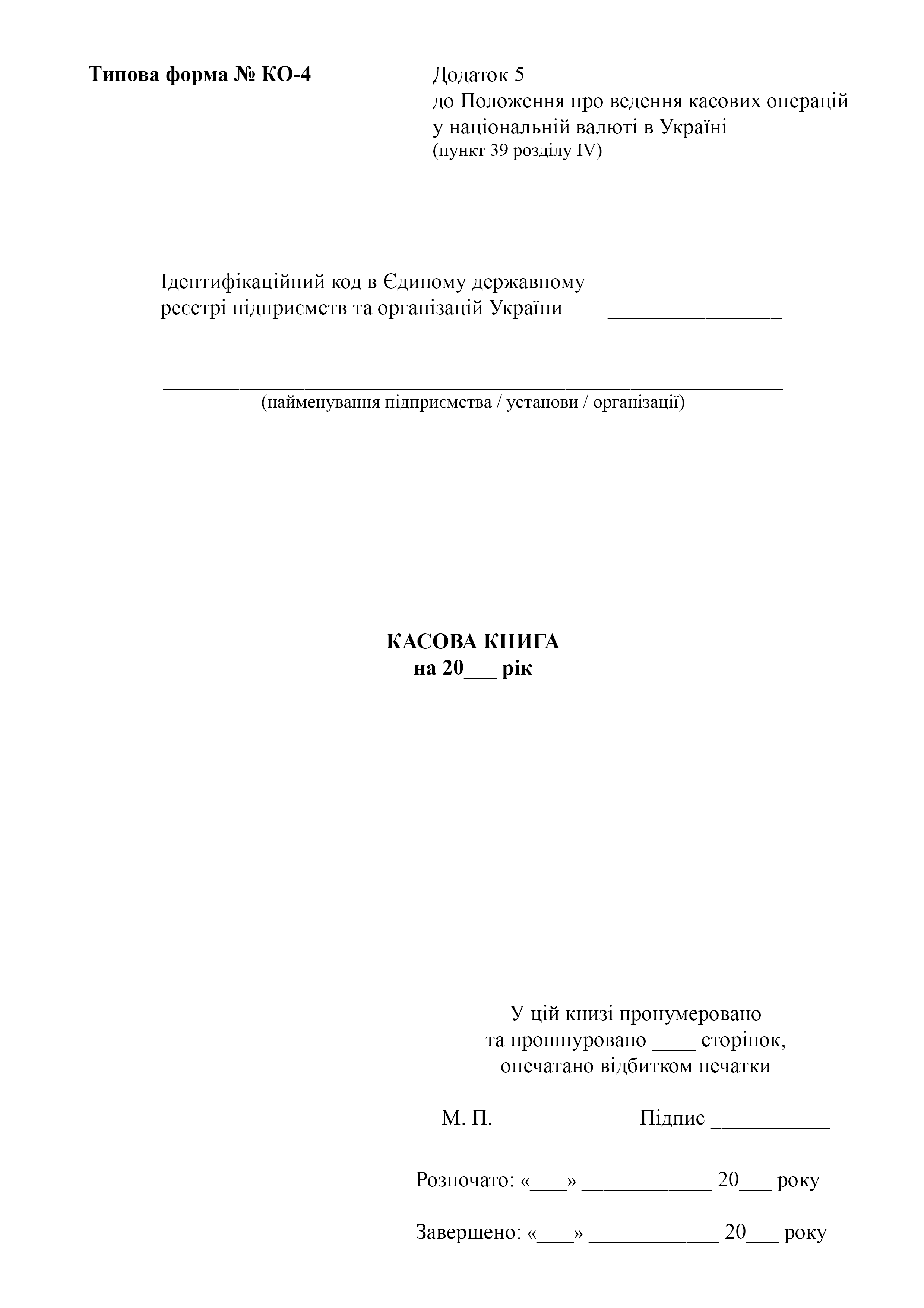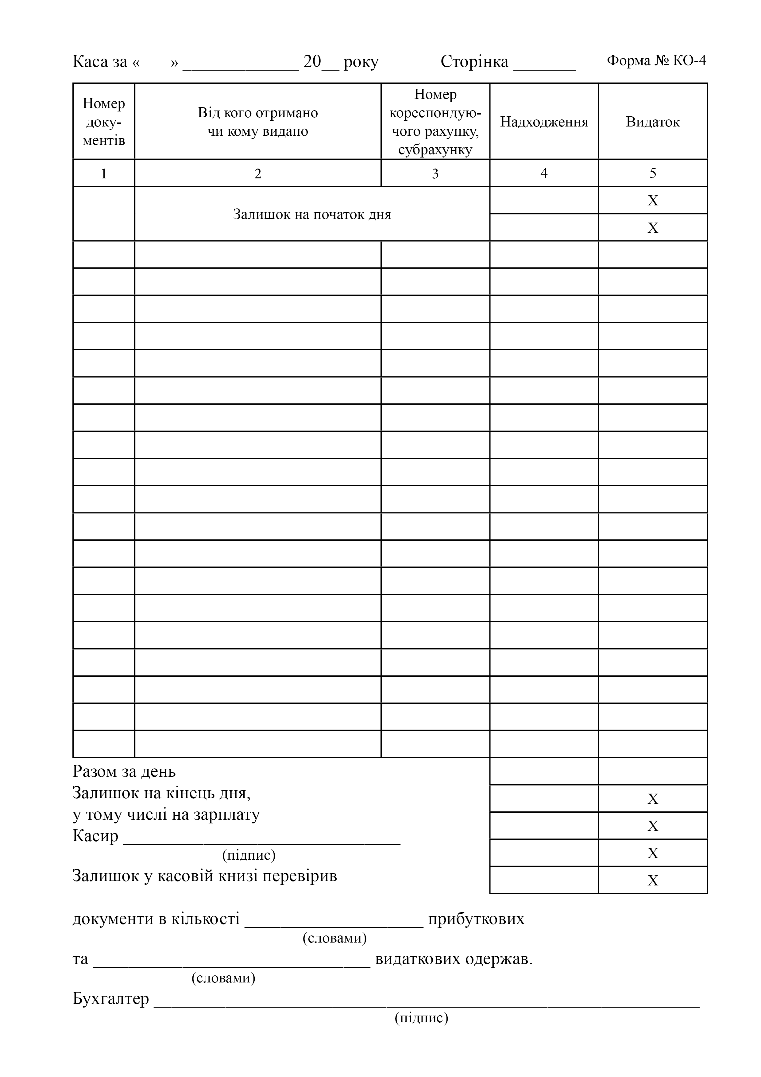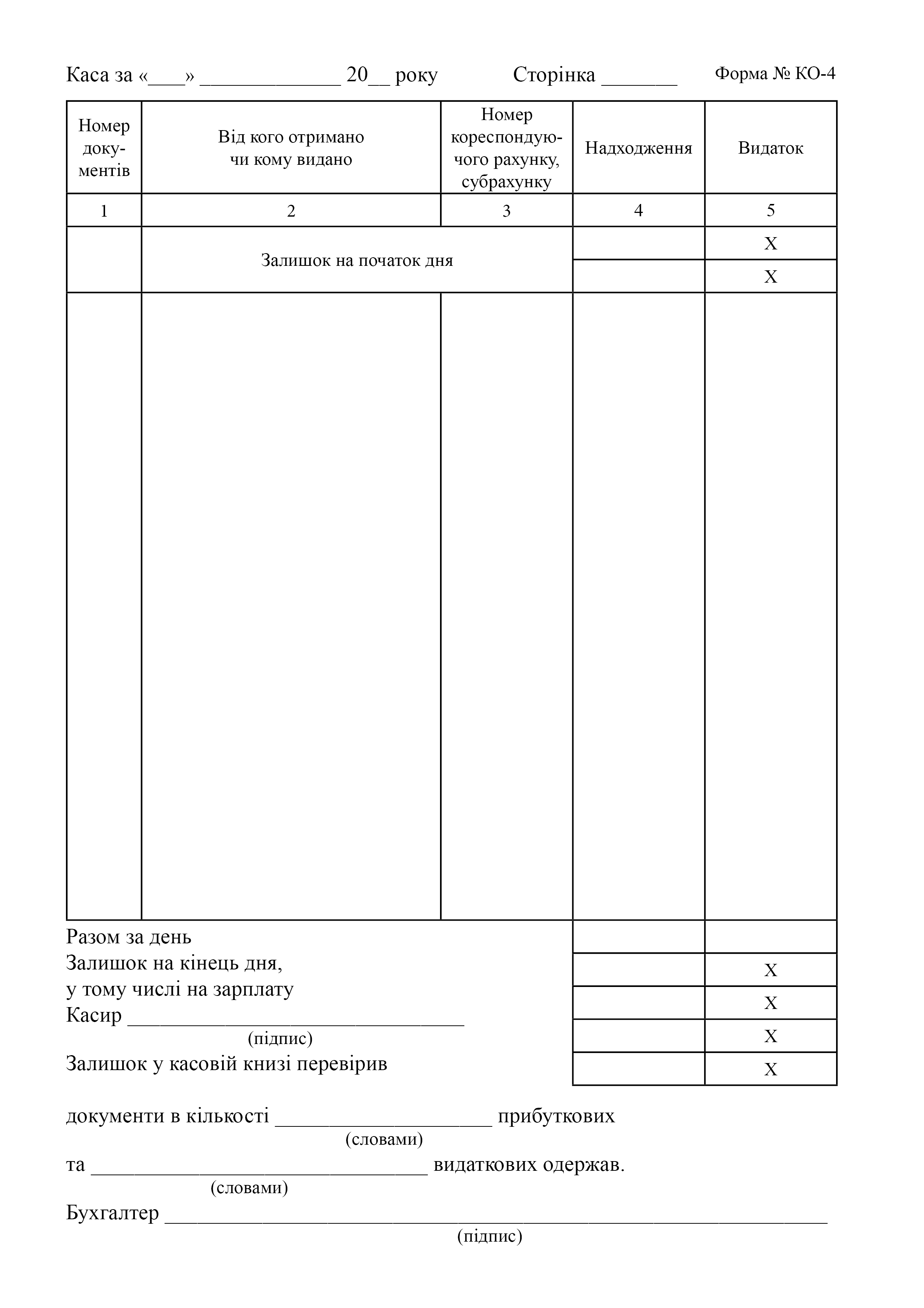 Типовая форма № КО-4.