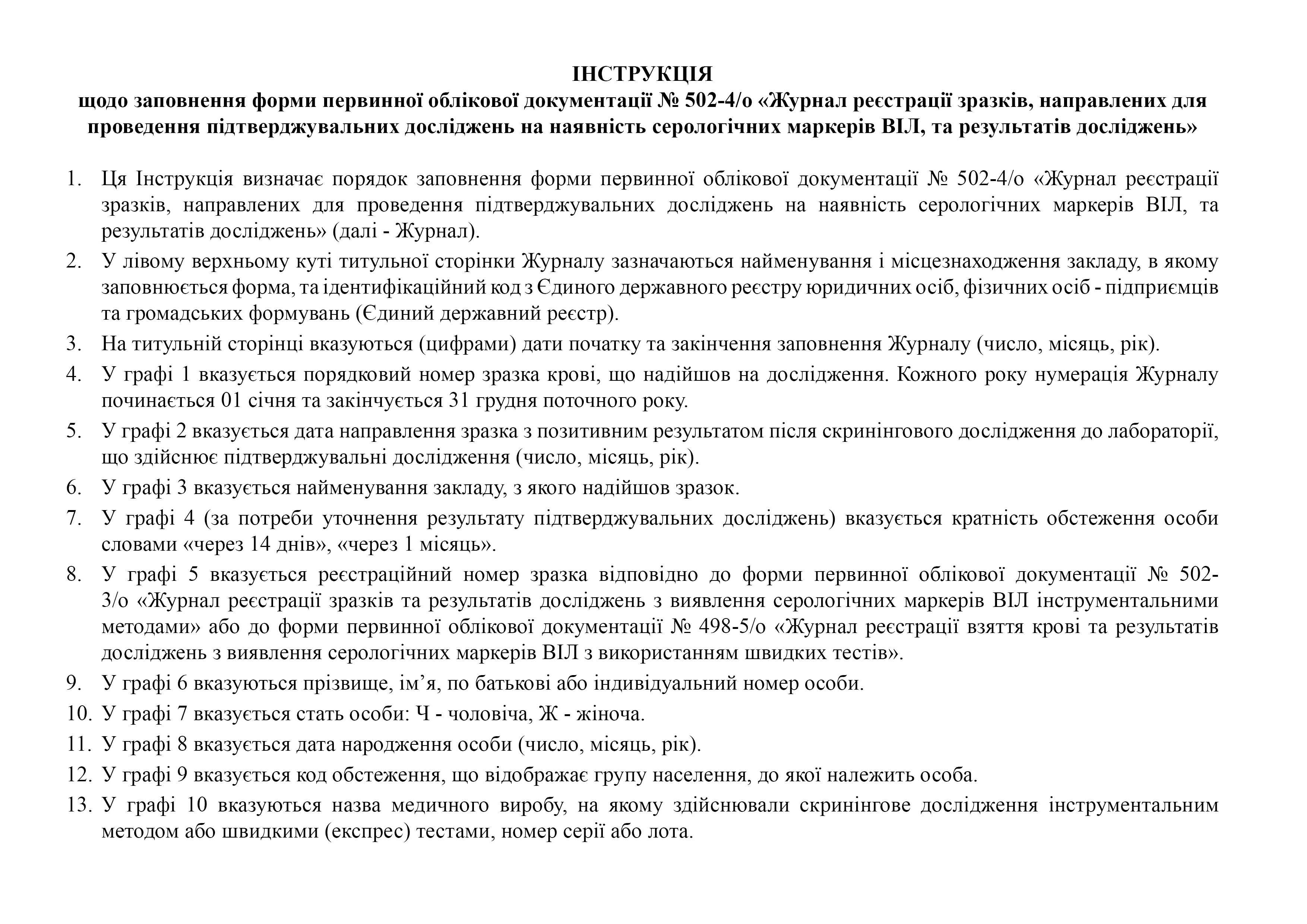 Журнал регистрации образцов, направленных на проведение подтверждающих исследований на наличие серологических маркеров ВИЧ, и результатов исследований.