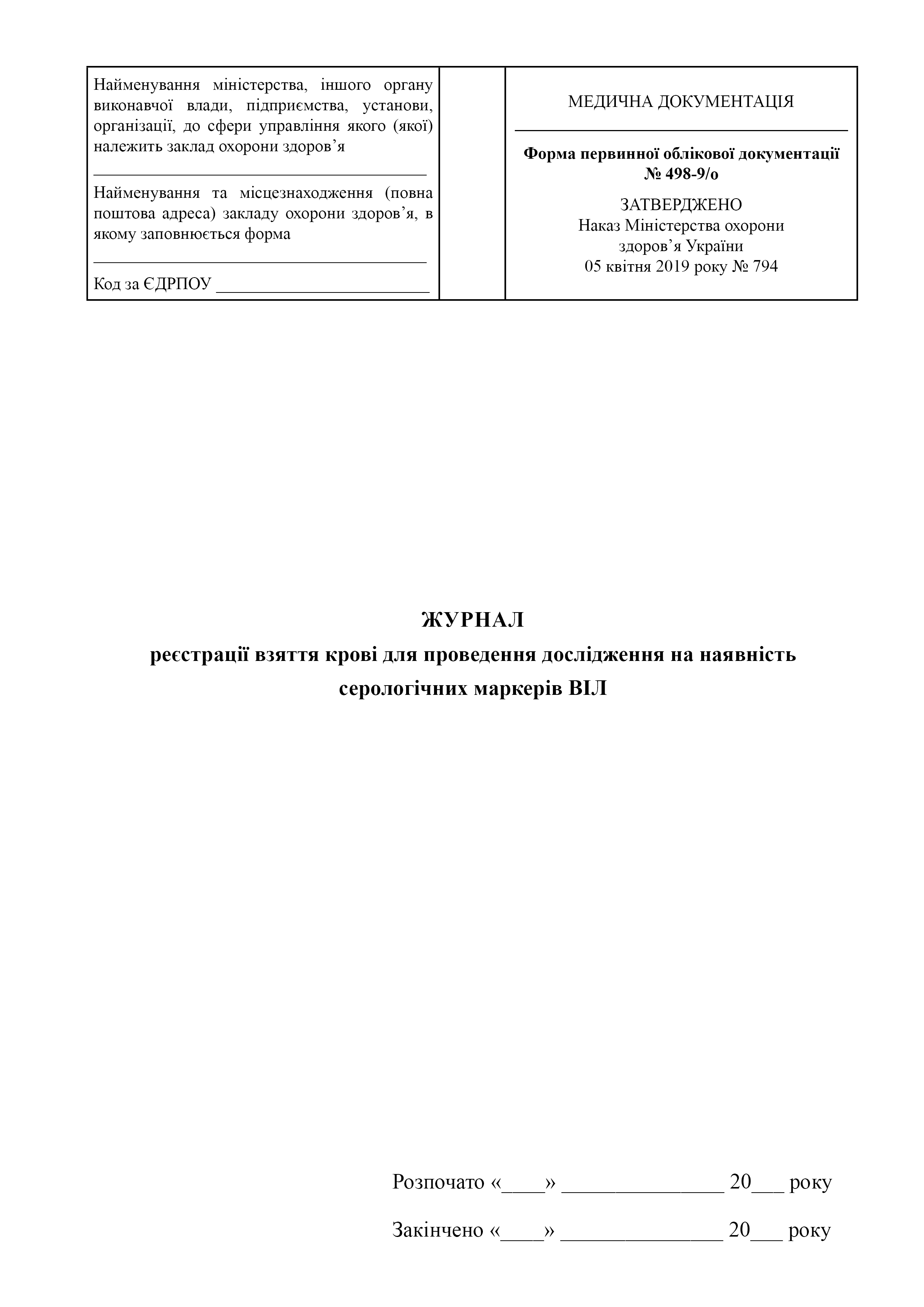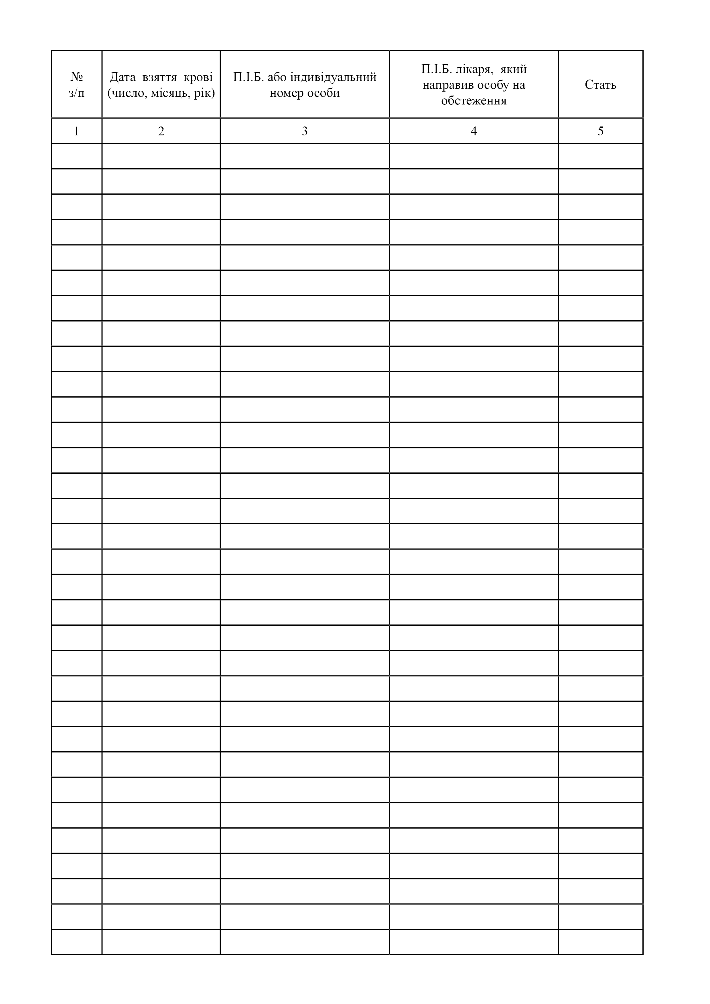 Журнал регистрации взятия крови для проведения исследования на наличие серологических маркеров ВИЧ.