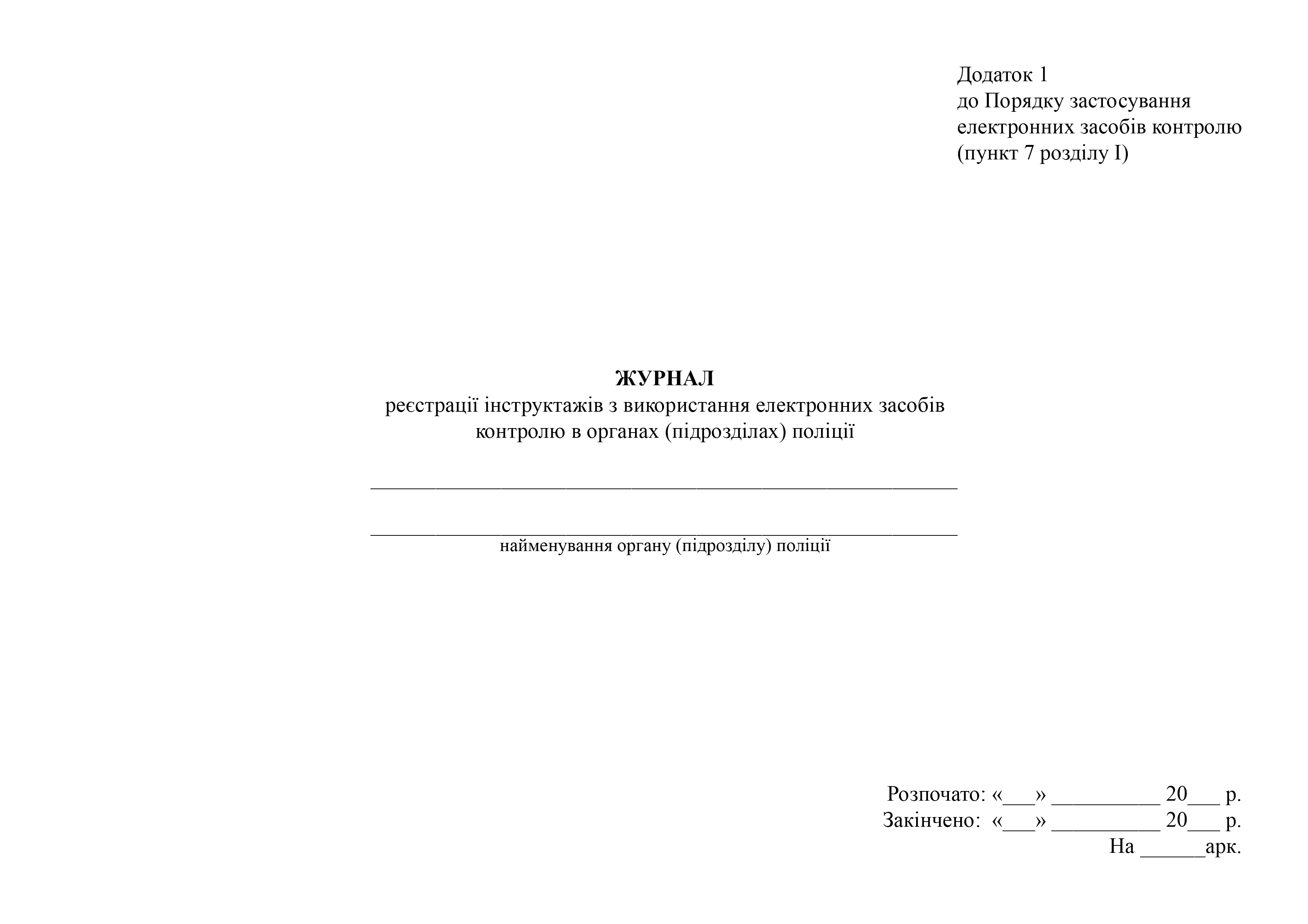 Журнал регистрации инструктажей по использованию электронных средств контроля в органах (подразделениях) полиции.