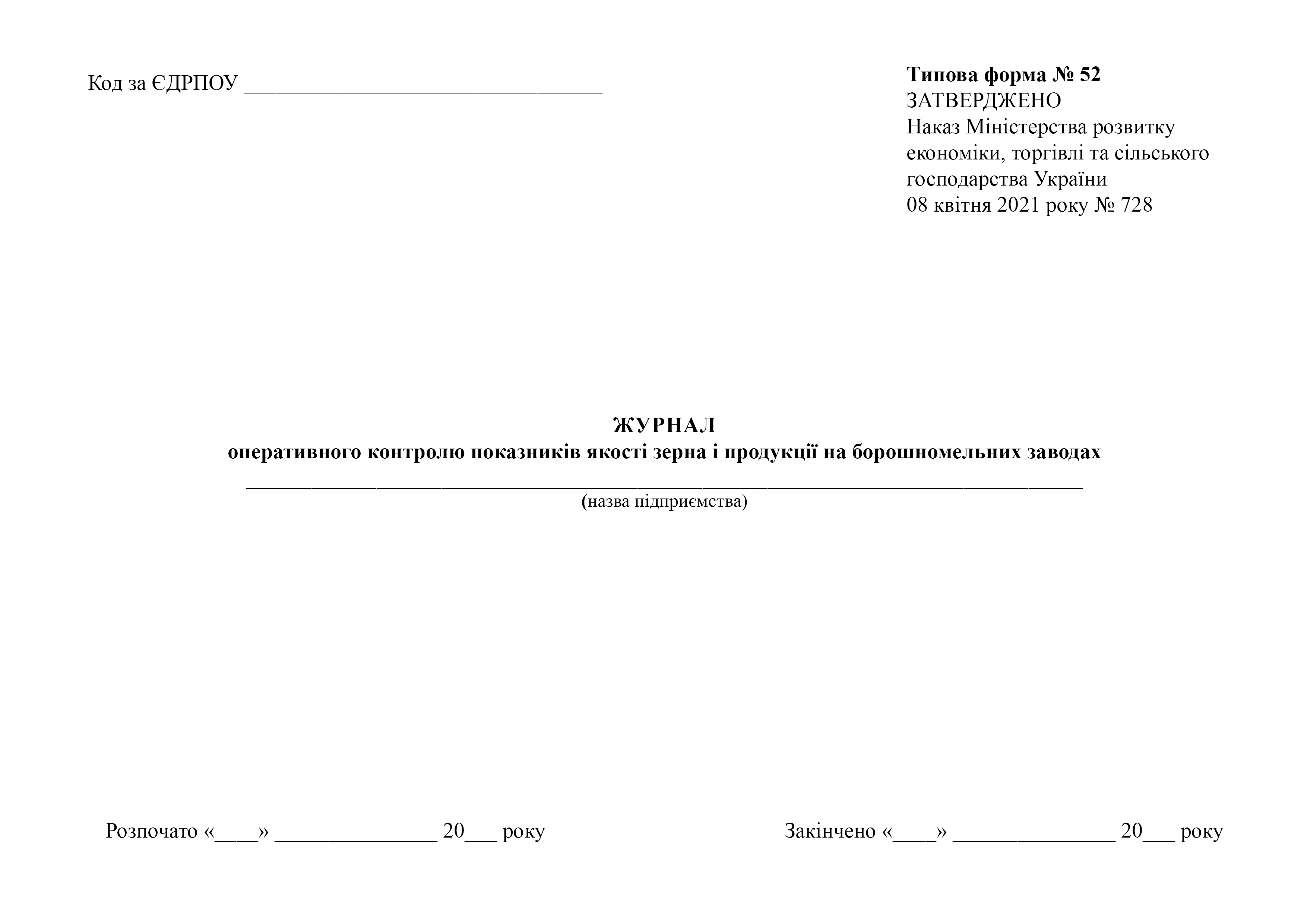 Журнал оперативного контроля показателей качества зерна и продукции на мукомольных заводах.