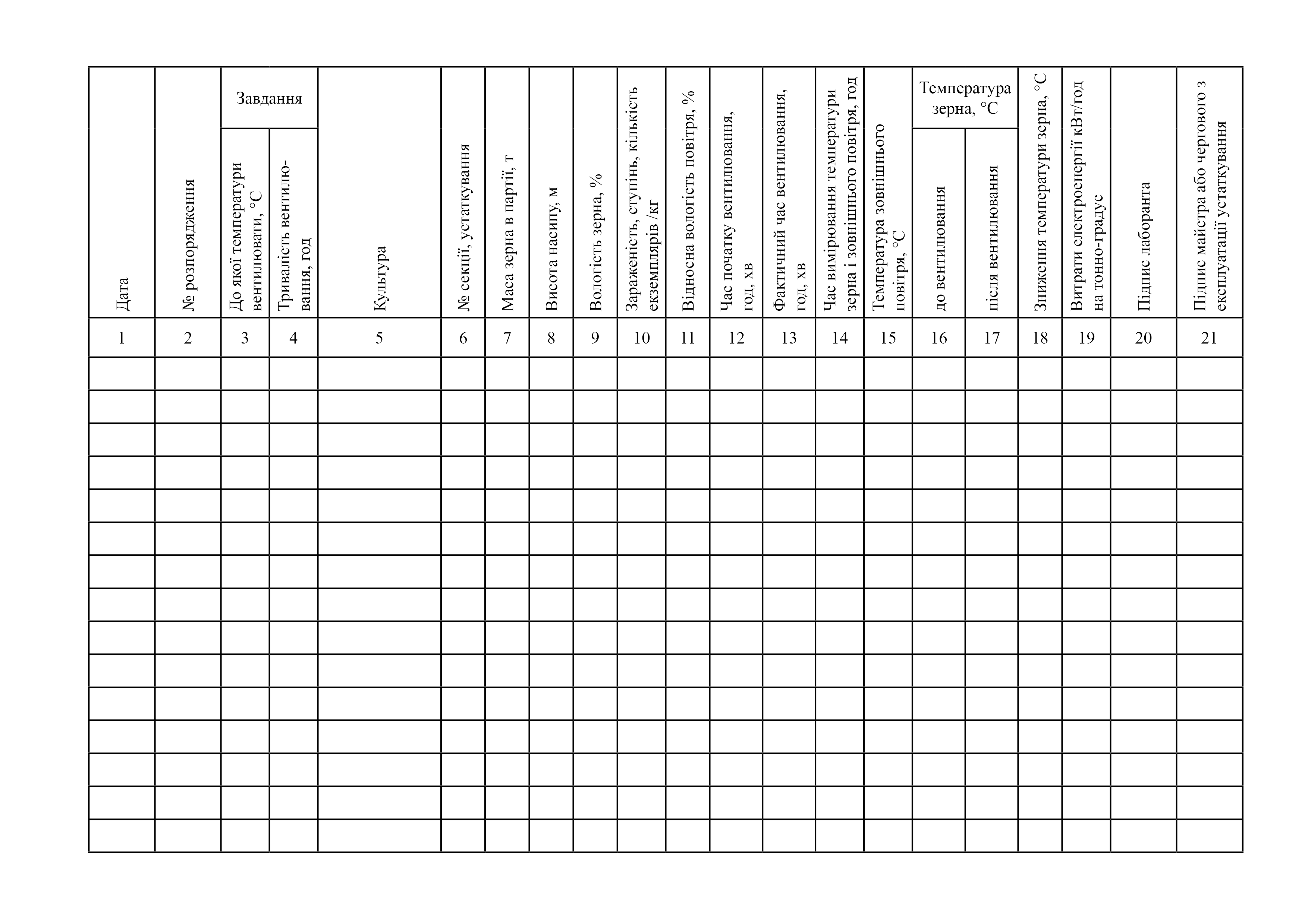 Журнал учета работ по вентилированию зерна атмосферным воздухом.