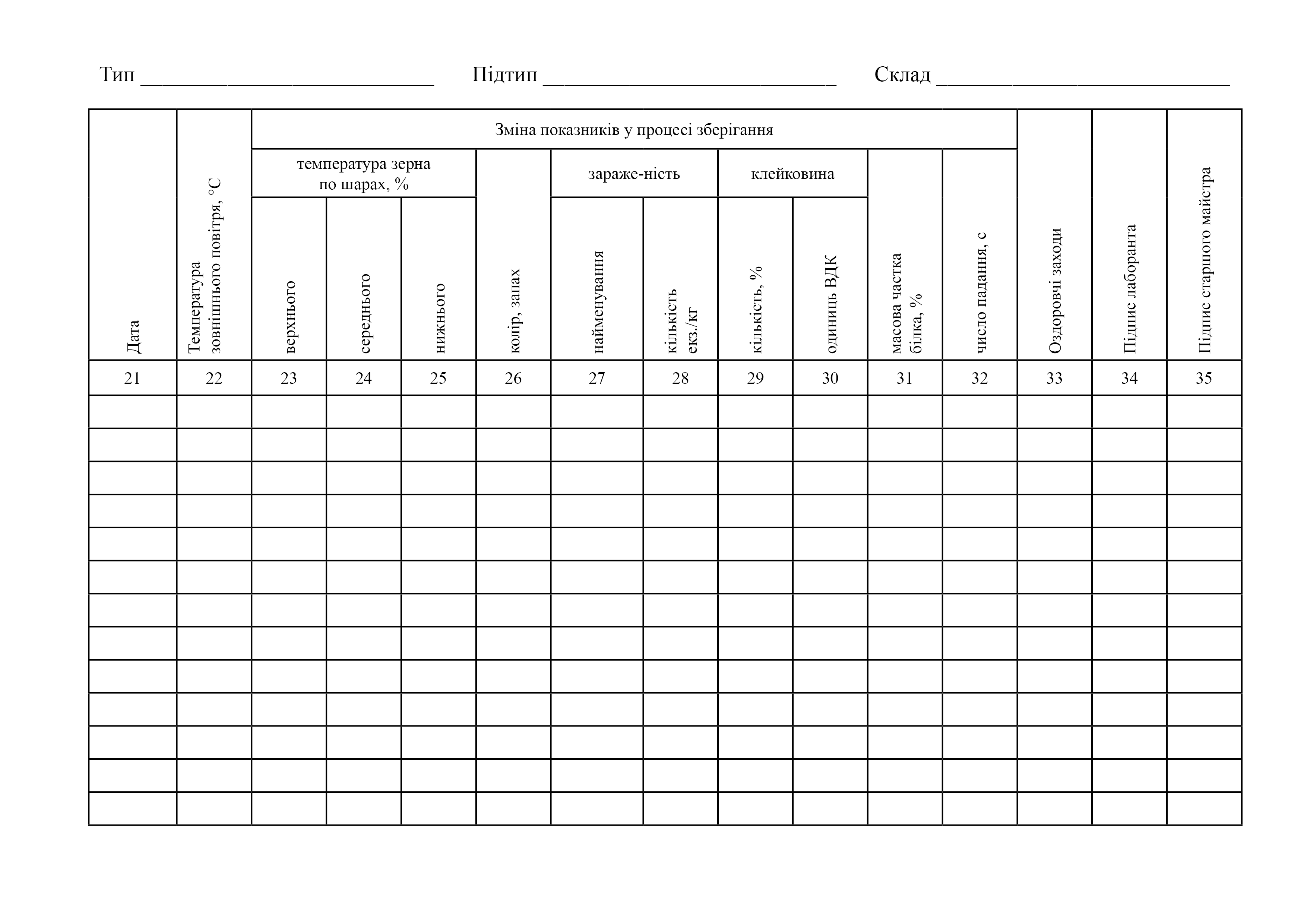 Журнал наблюдения за зерном, хранящийся в зернохранилищах, металлических банках и в силосах элеватора.