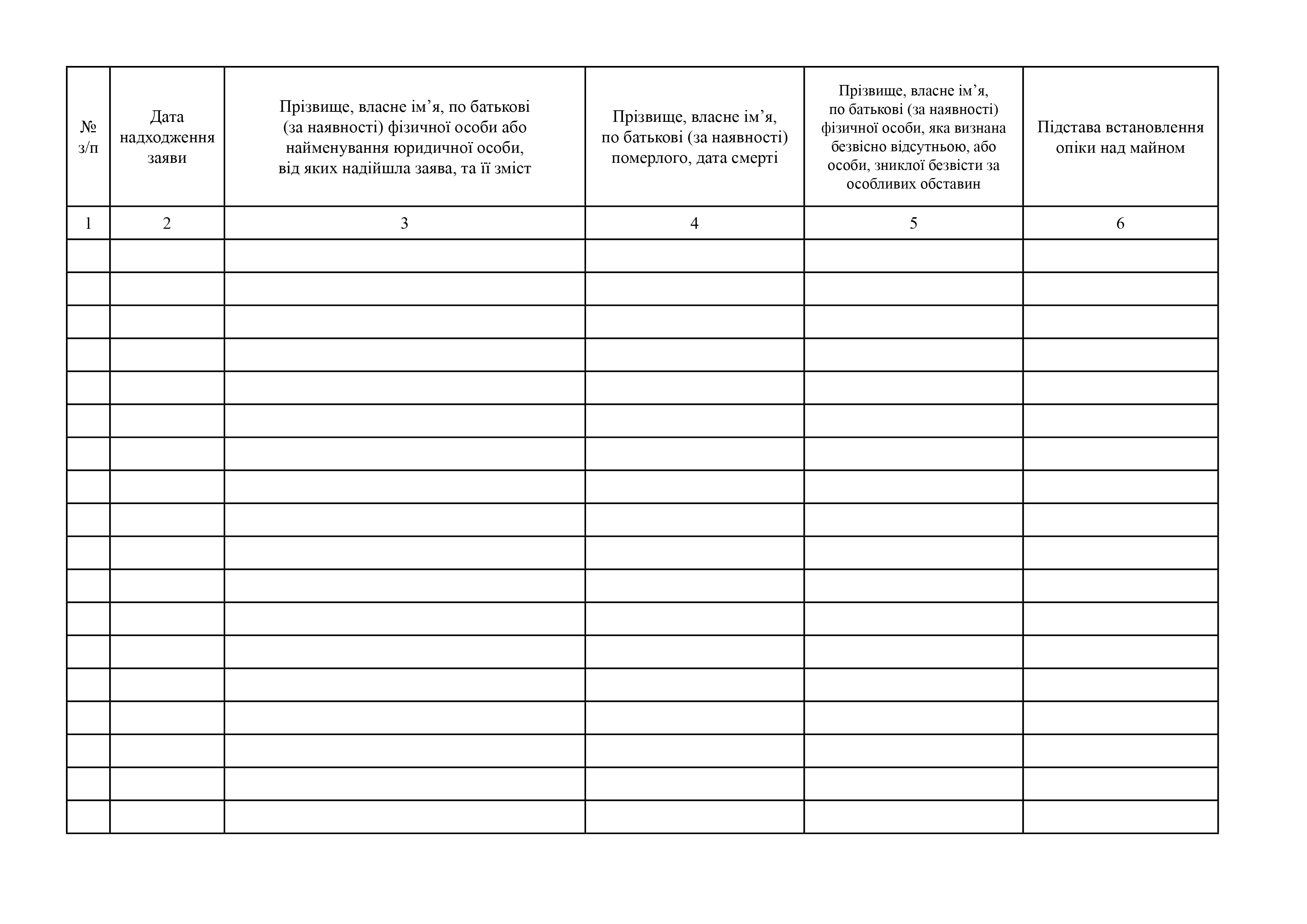 Книга учета заявлений о принятии мер по охране наследственного имущества и установления опеки над имуществом физического лица, признанного безвестно отсутствующим, или лица, пропавшего без вести при особых обстоятельствах.