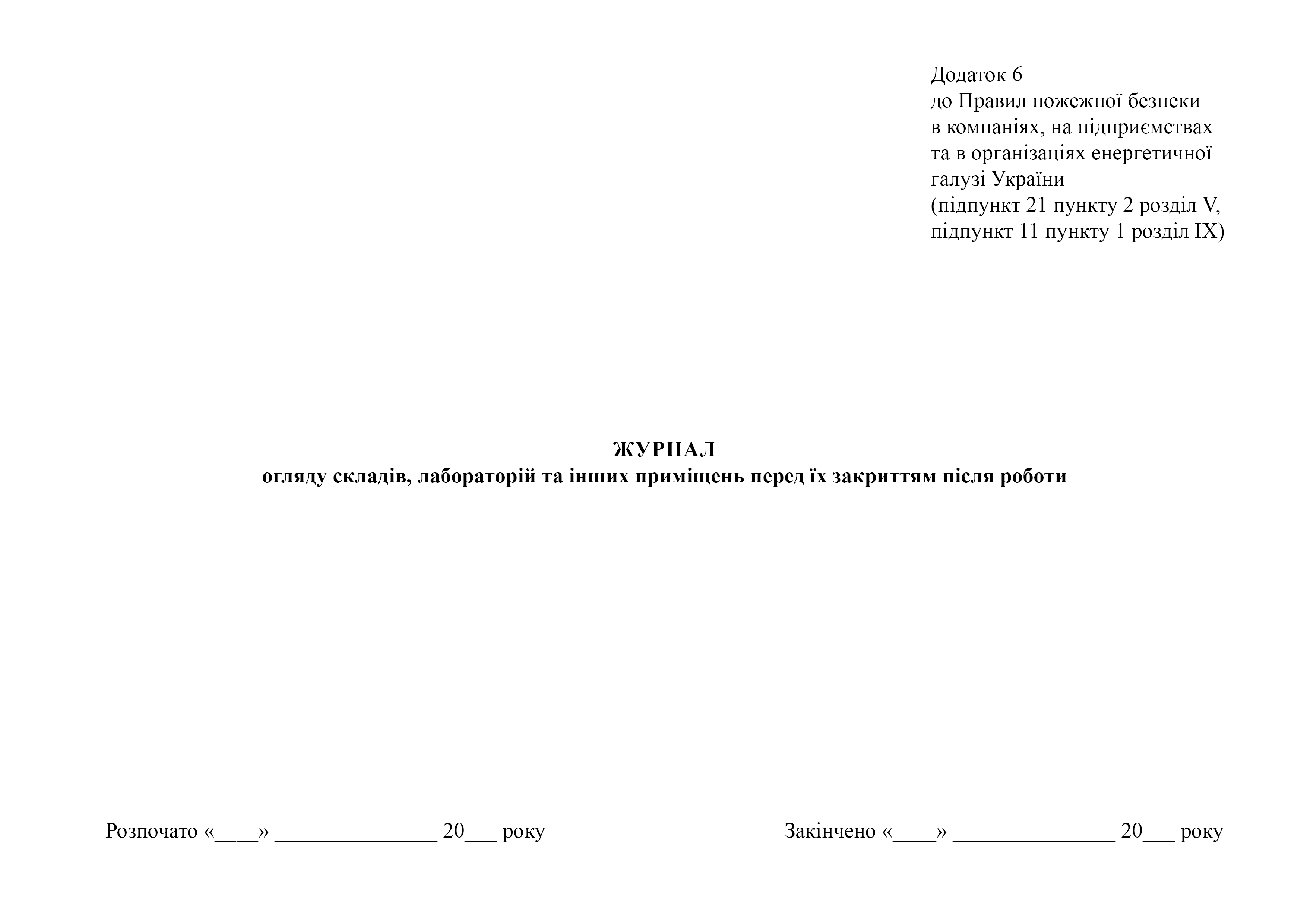 Журнал осмотра складов, лабораторий и других помещений перед их закрытием после работы.