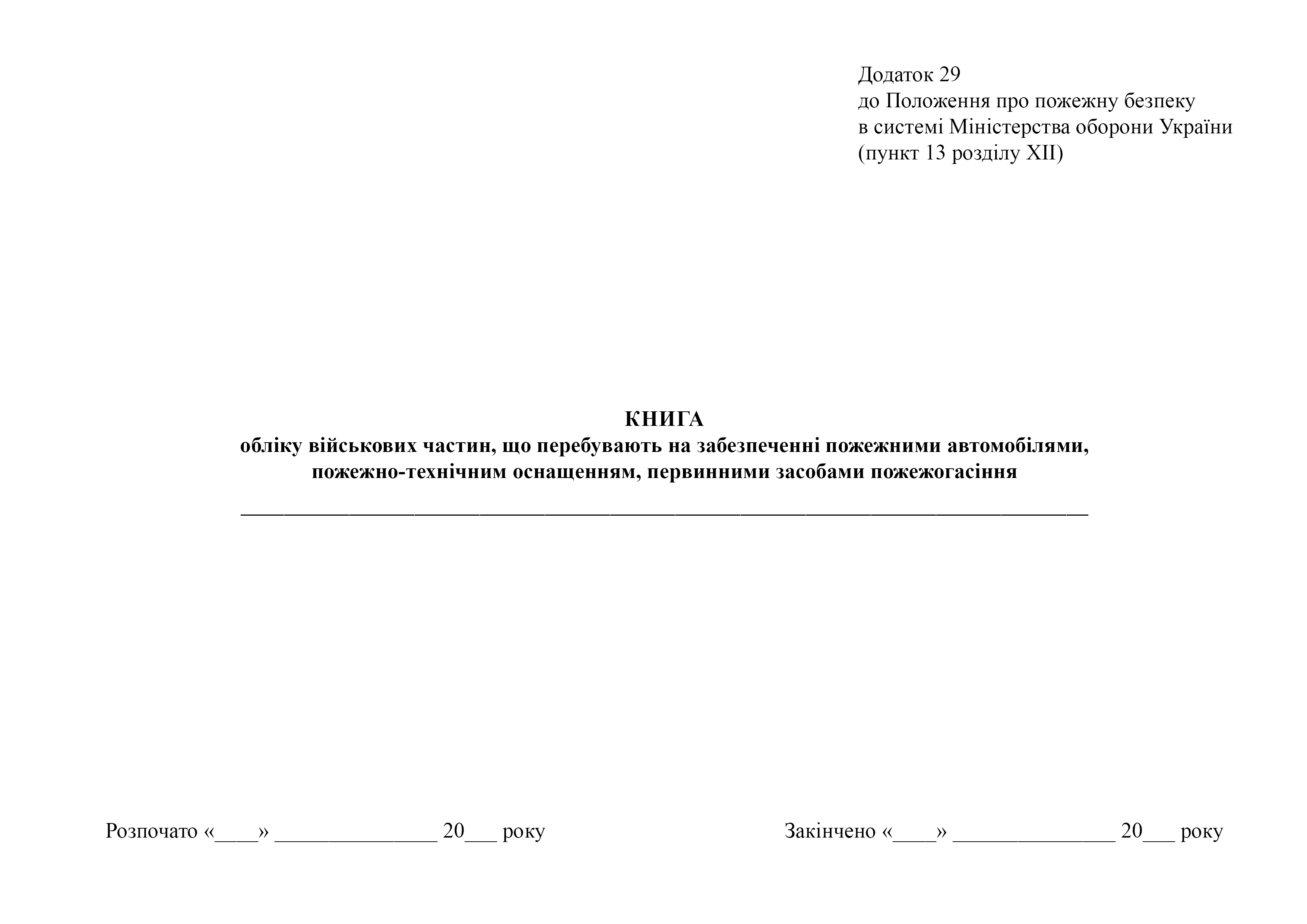 Книга учета военных частей, находящихся на обеспечении пожарными автомобилями, пожарно-технической оснасткой, первичными средствами пожаротушения.