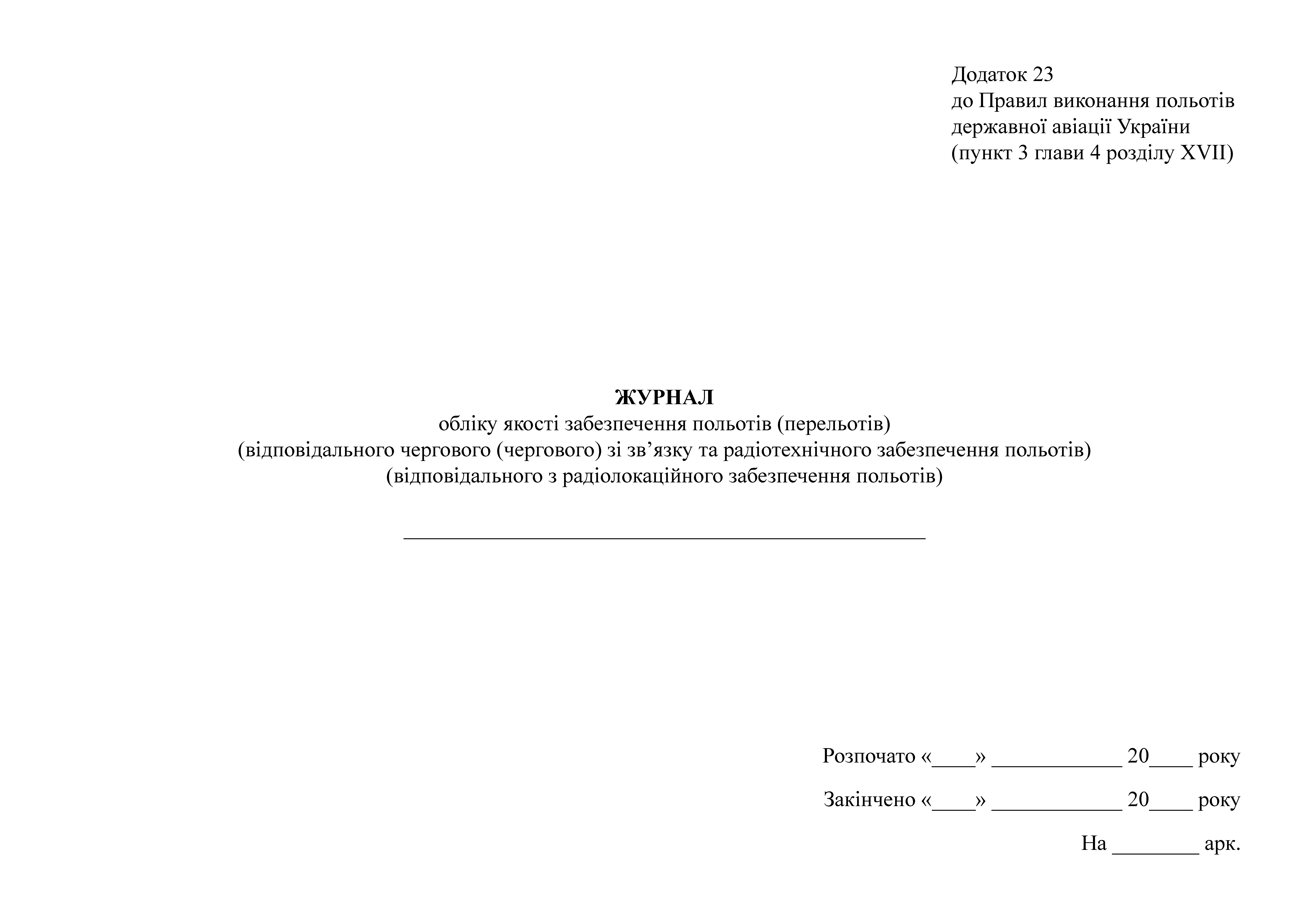 Журнал учета качества обеспечения полетов (перелетов) (ответственного дежурного (очередного) связи и радиотехнического обеспечения полетов) (ответственного по радиолокационному обеспечению полетов).