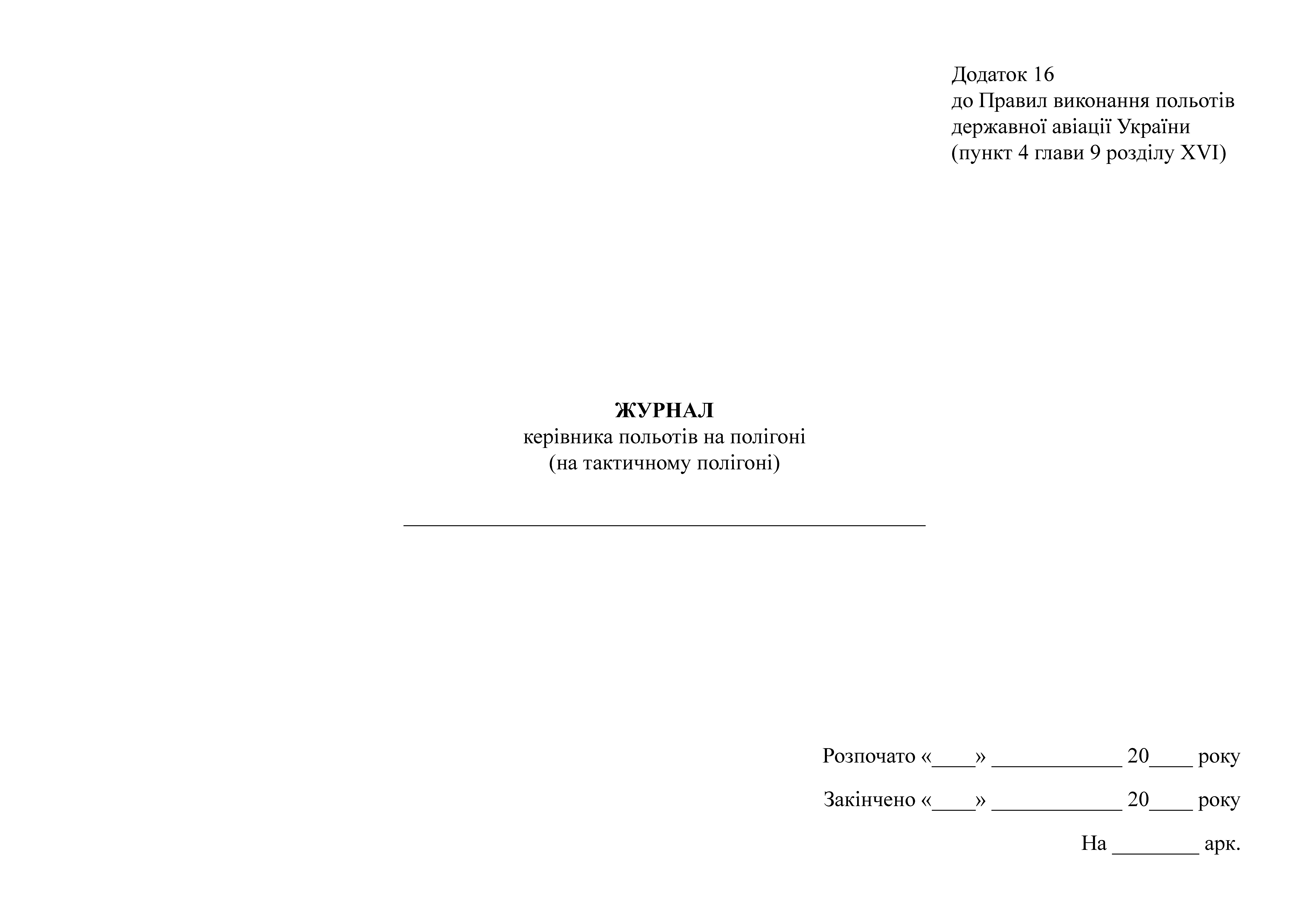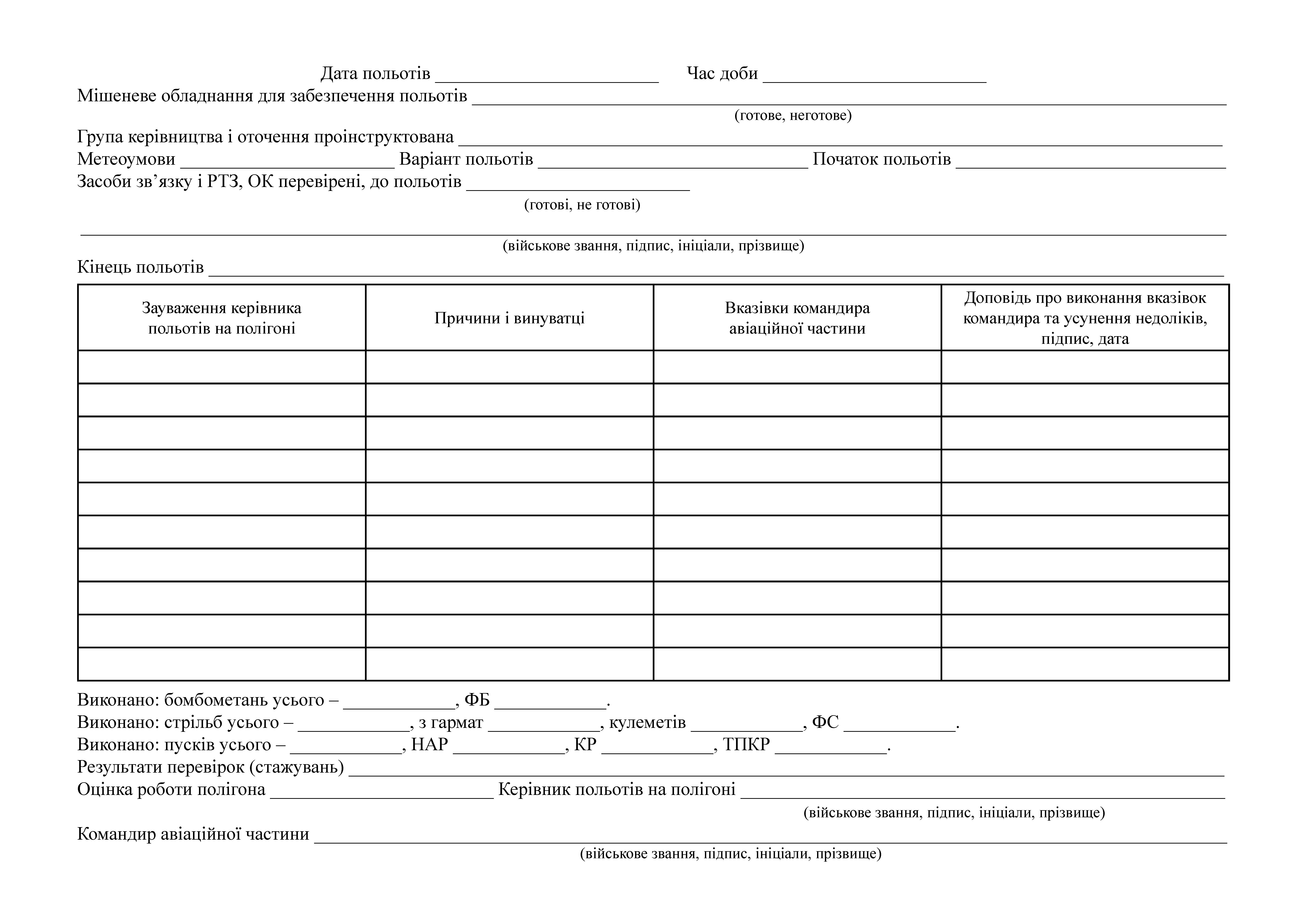 Журнал руководителя полетов на полигоне (на тактическом полигоне).