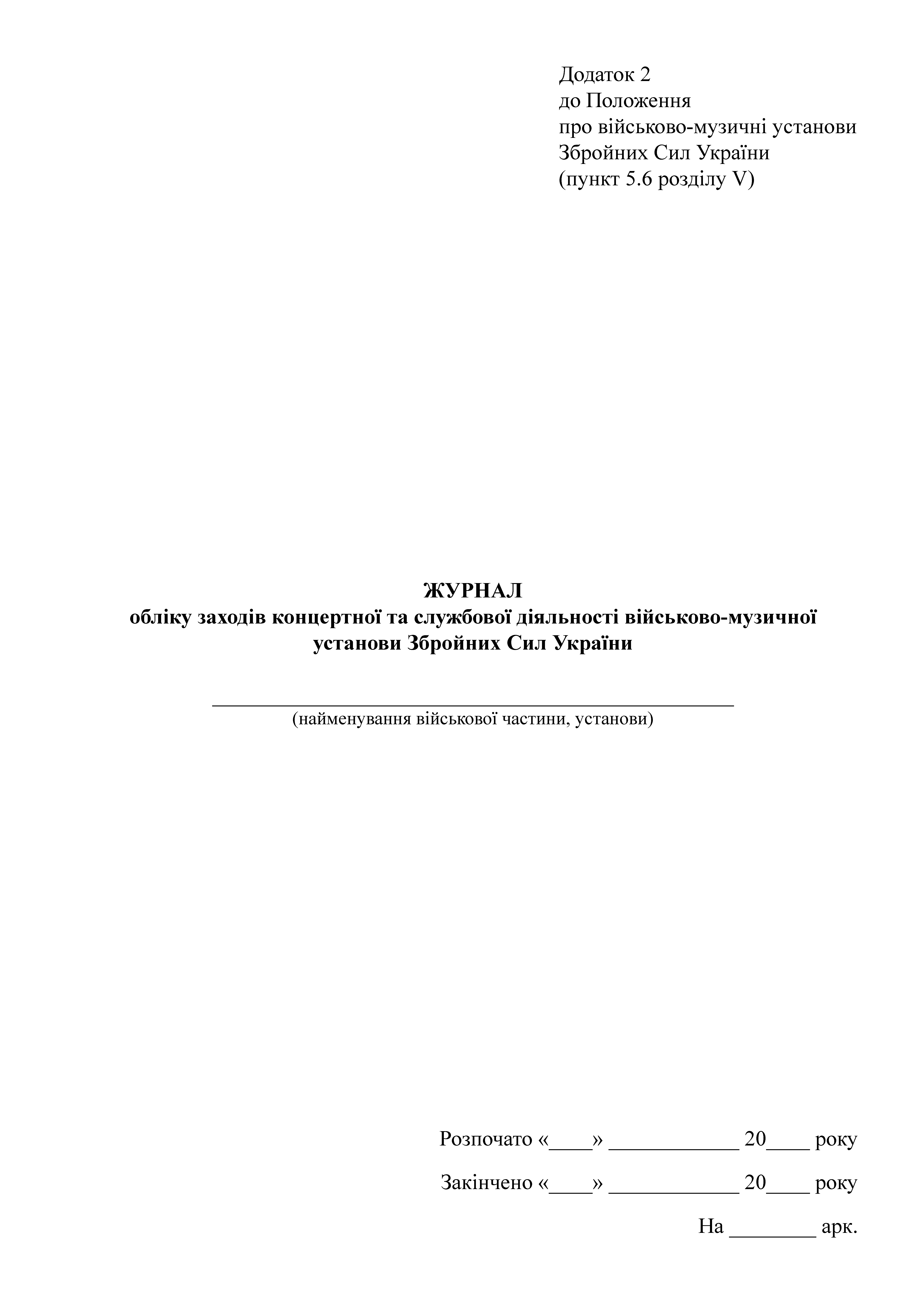 Журнал учета мероприятий концертной и служебной деятельности военно-музыкального учреждения Вооруженных сил Украины.