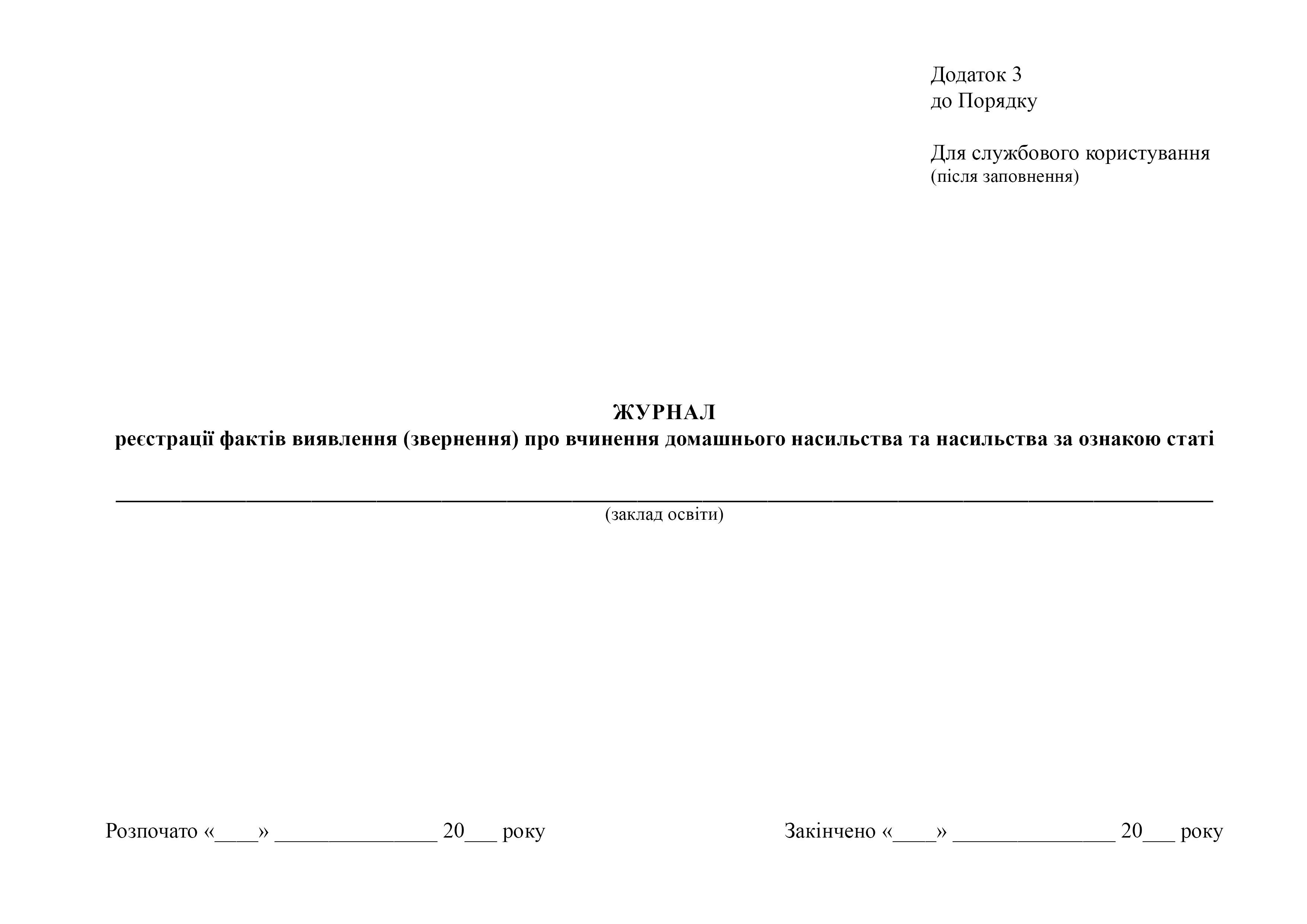 Журнал регистрации фактов выявления (обращения) о совершении домашнего насилия и насилия по признаку пола.