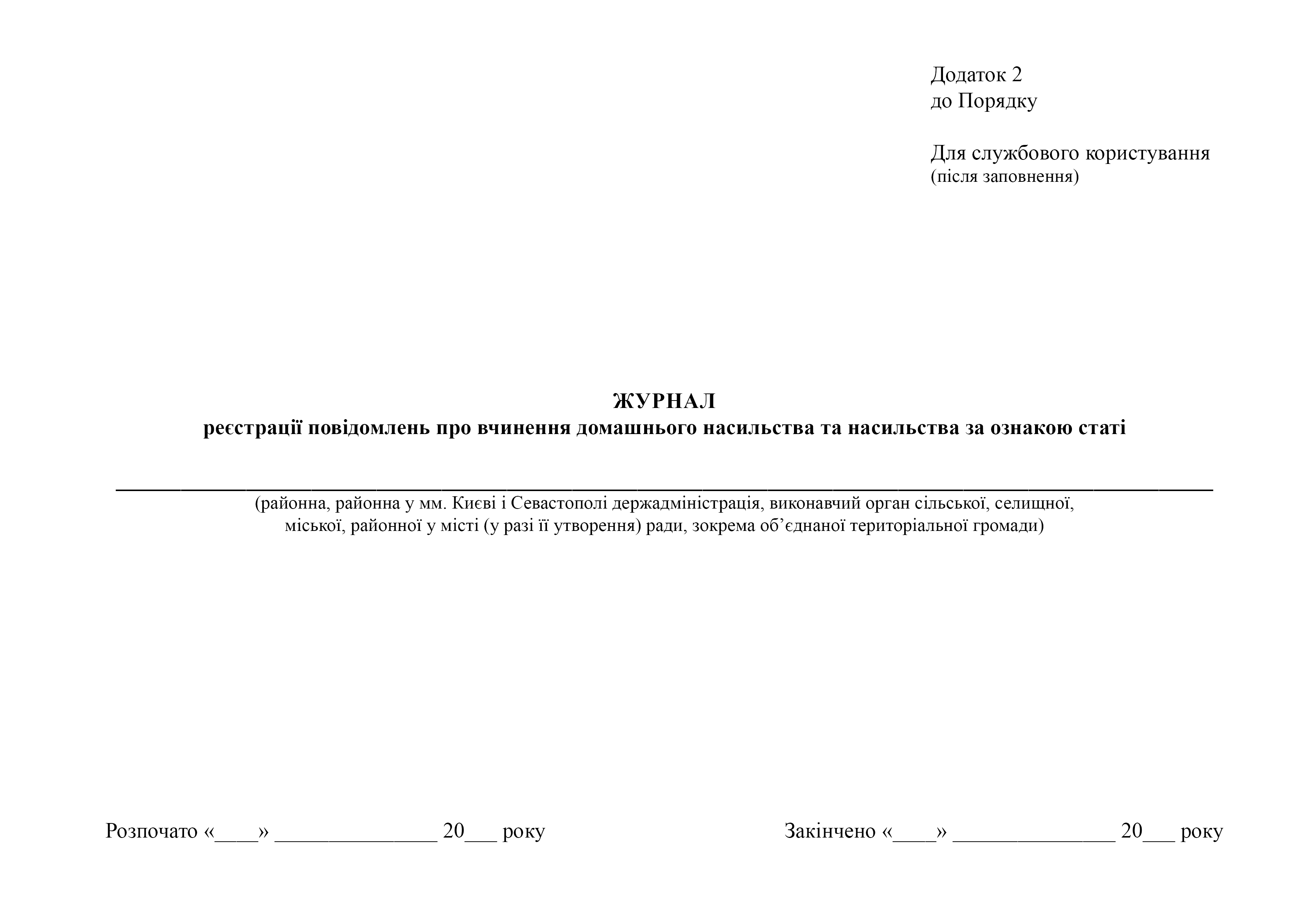 Журнал регистрации сообщений о совершении домашнего насилия и насилия по признаку пола.