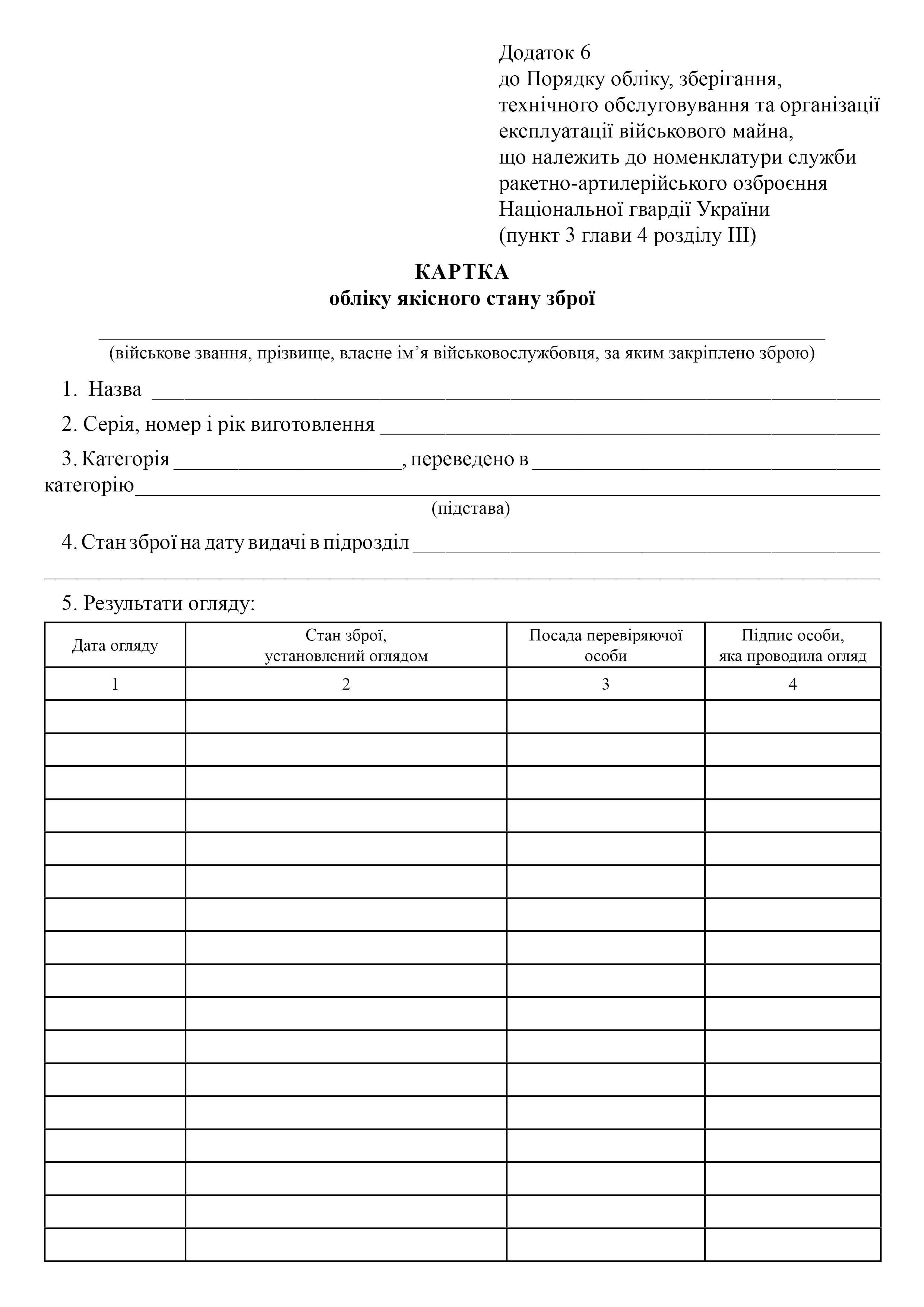 Карточка учета качественного состояния оружия.
