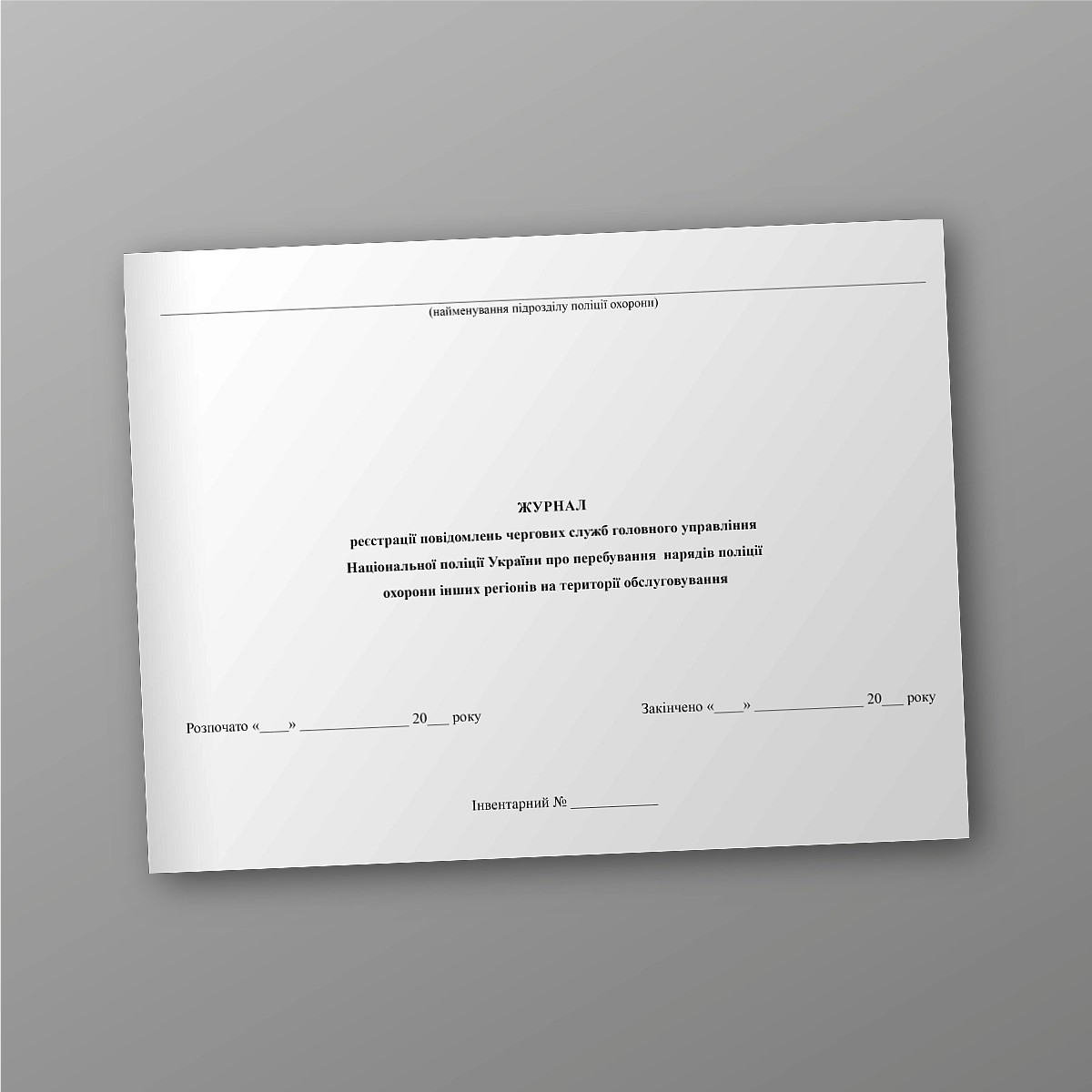 Журнал регистрации сообщений дежурных служб главного управления Национальной полиции Украины о пребывании нарядов полиции охраны других регионов на территории обслуживания.