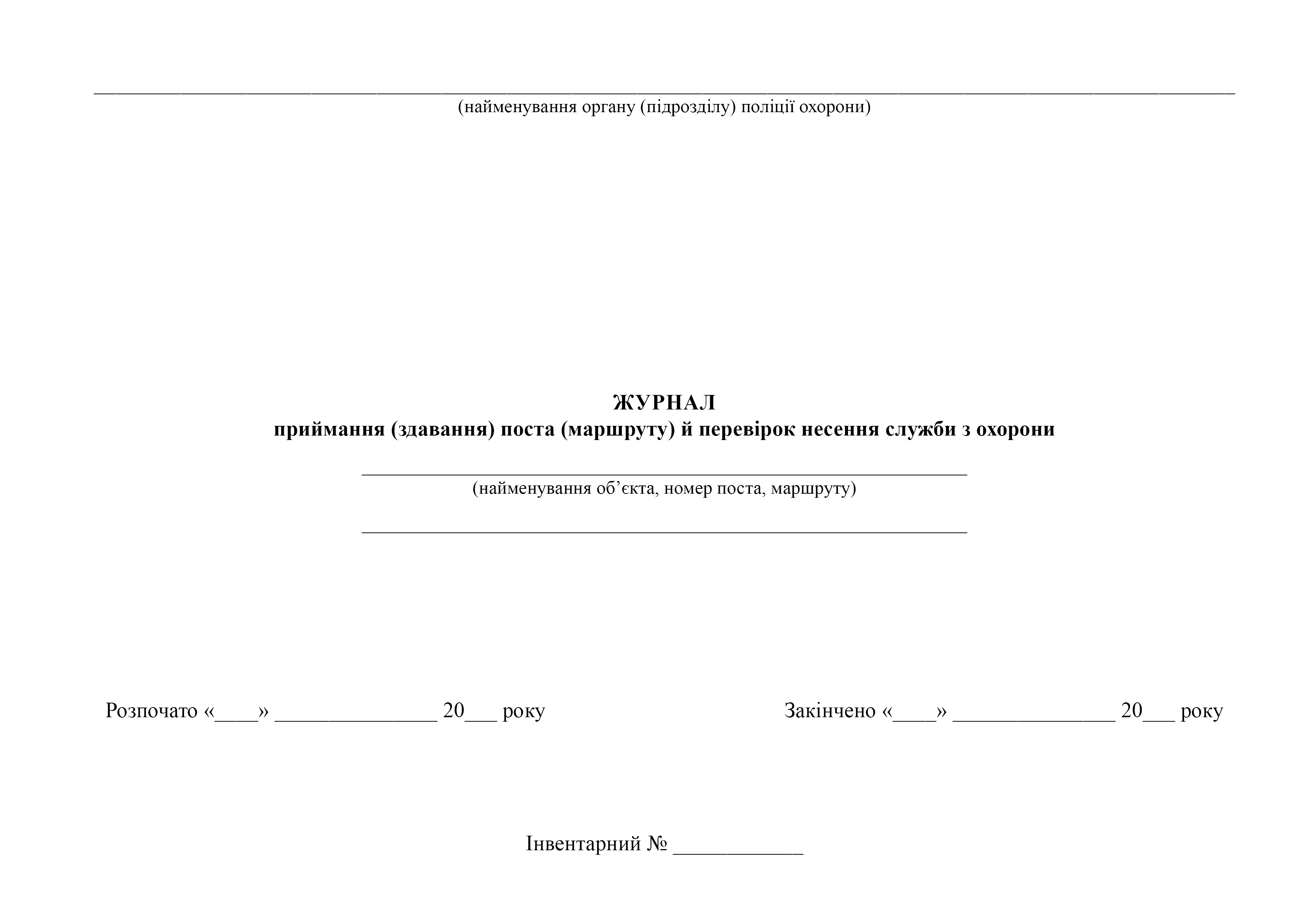 Журнал приема (сдачи) поста (маршрута) и проверок несения службы по охране.