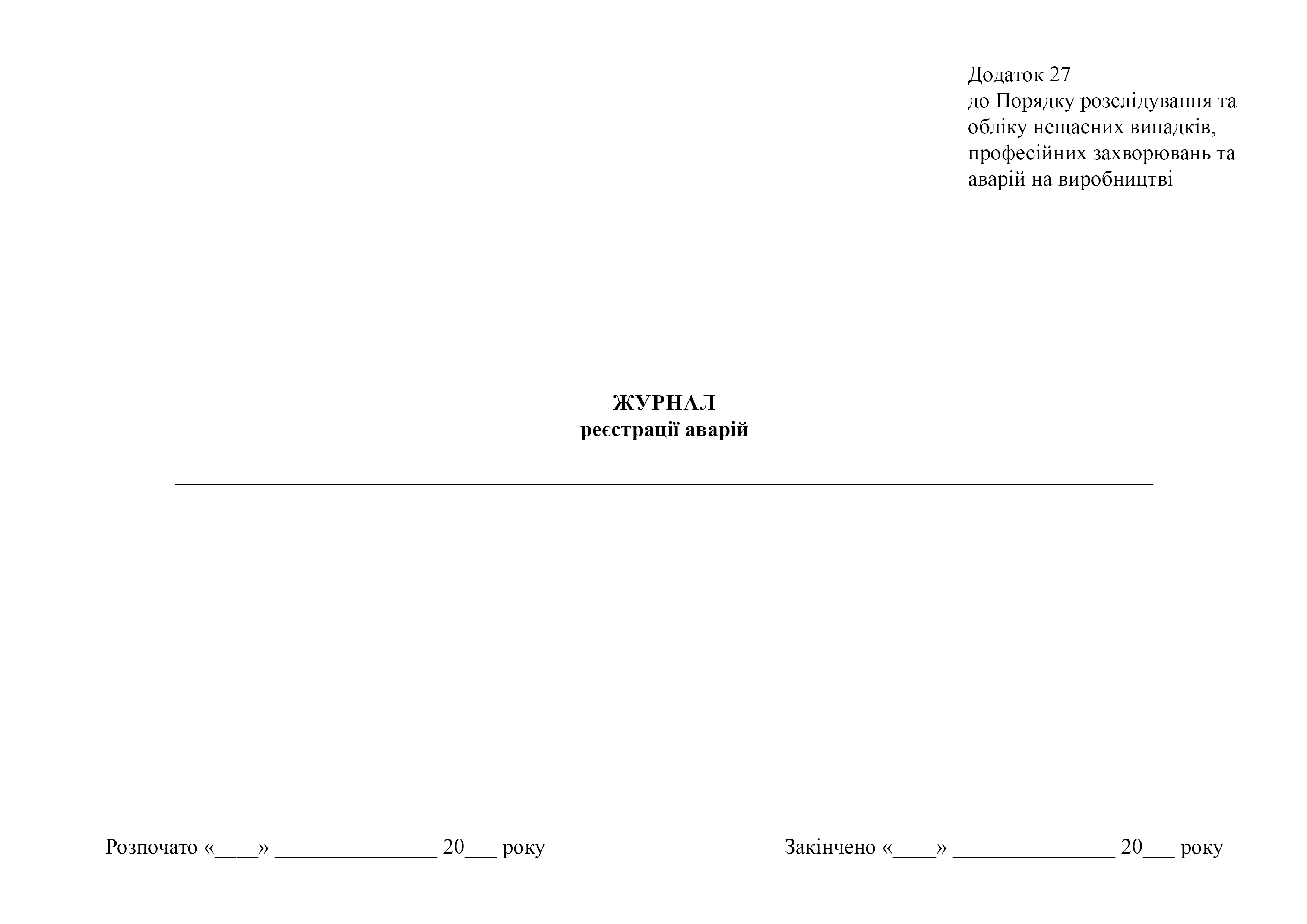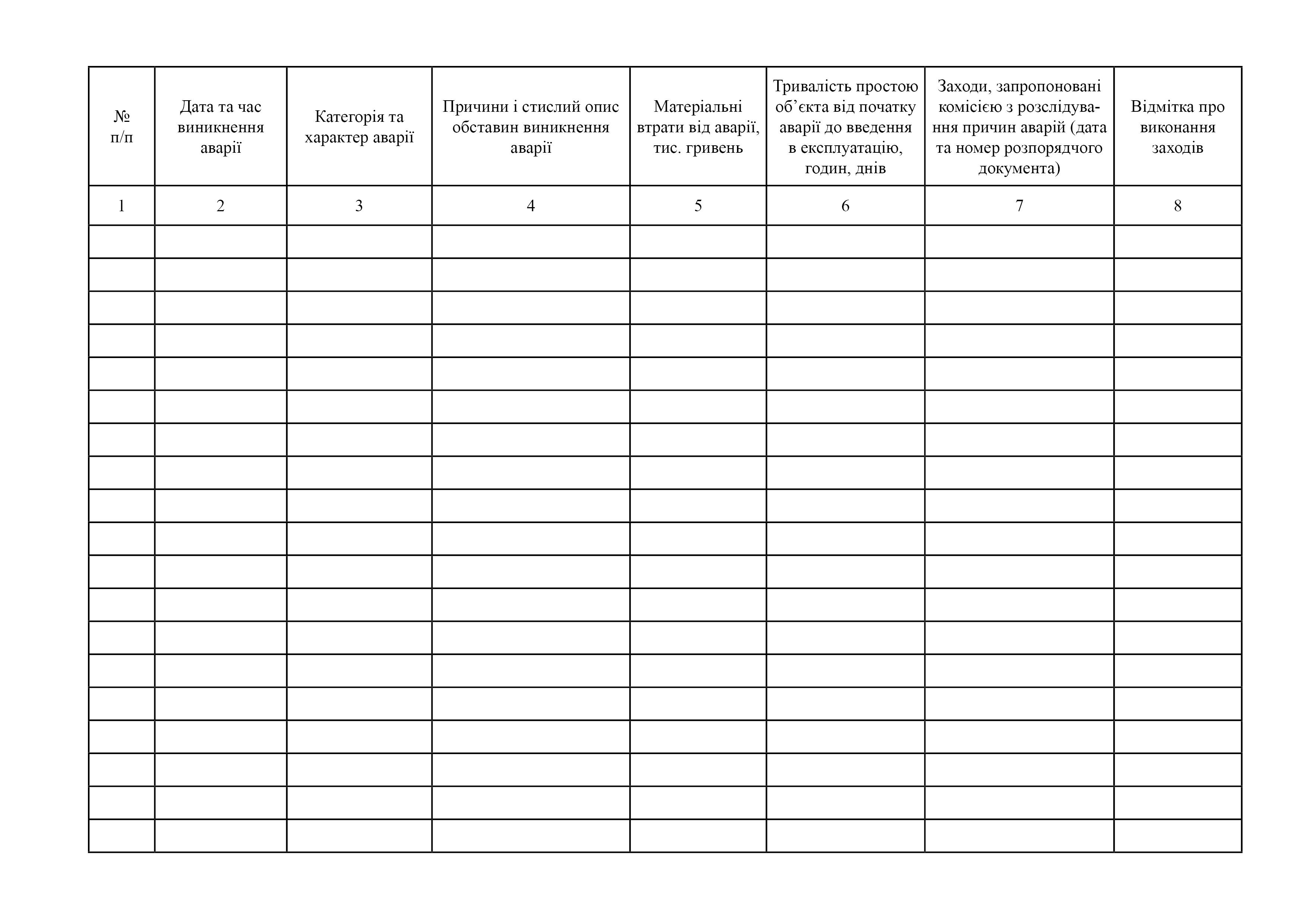Журнал регистрации аварий.