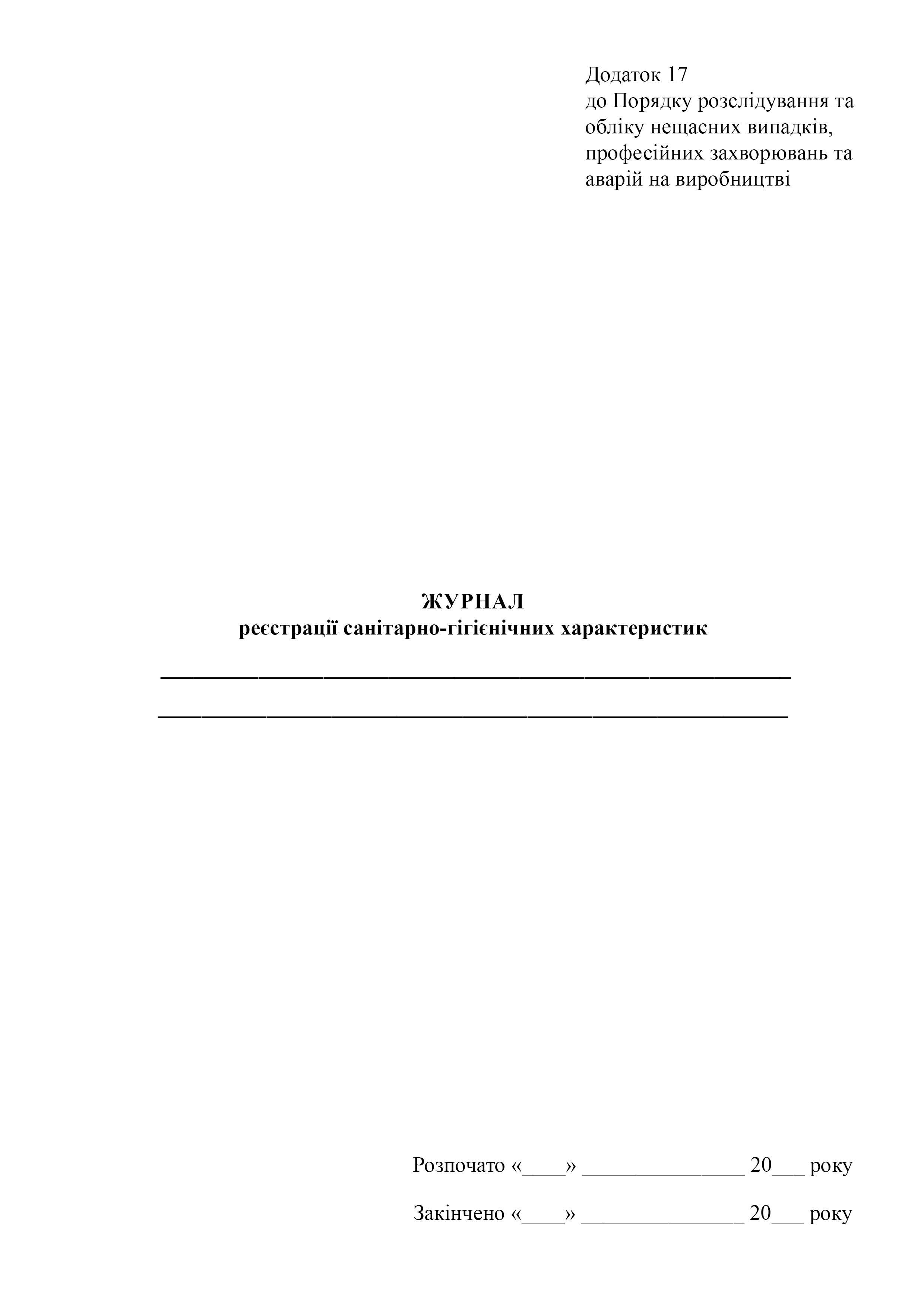 Журнал регистрации санитарно-гигиенических характеристик.