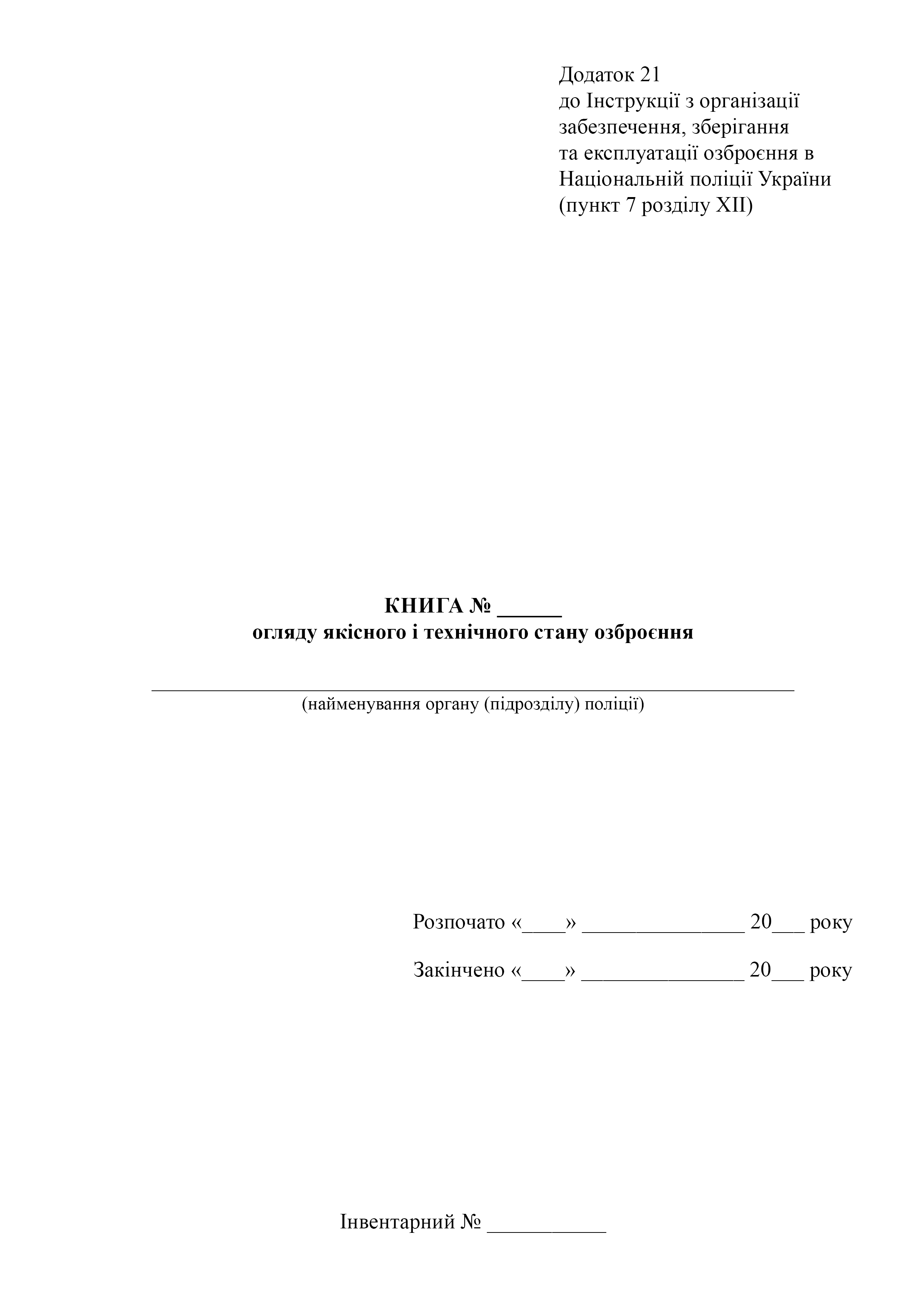 Книга обзора качественного и технического состояния вооружения.
